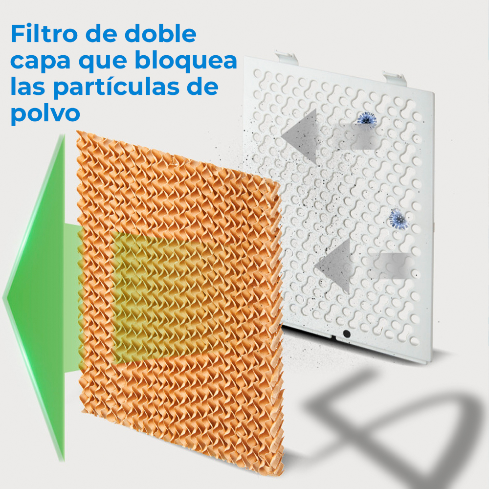Función 3 en 1: Enfría, purifica e ioniza el aire para un ambiente más saludable.