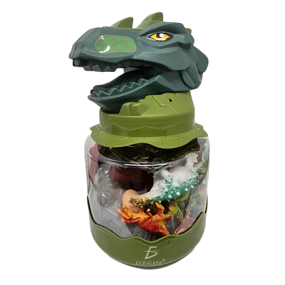 Almacenamiento en Forma de Cabeza de Dinosaurio con Juguetes de Dinosaurios para Niños.