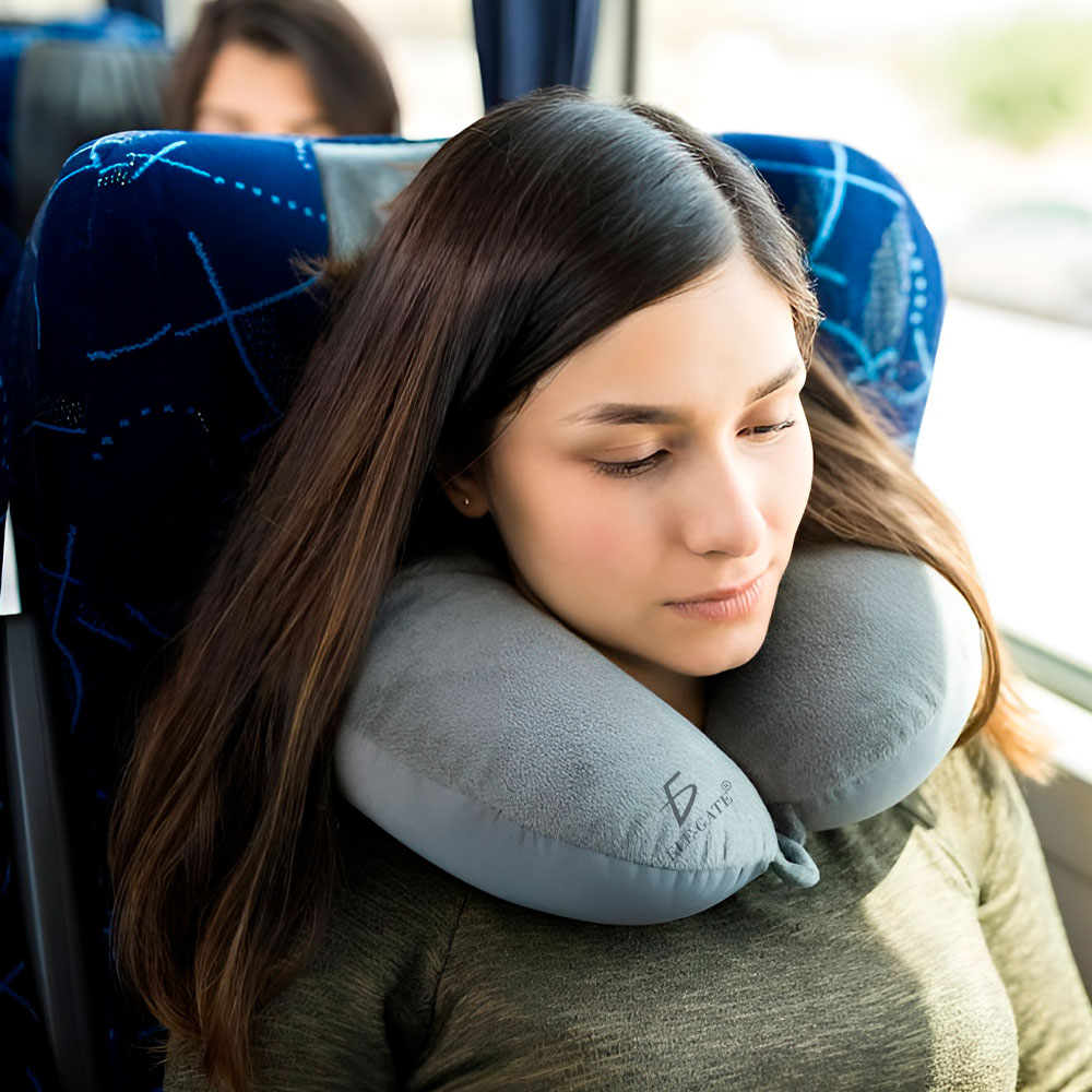 Almohada de Viaje de Espuma Viscoelástica en Forma de U – Soporte para Cuello y Reposacabezas Portátil