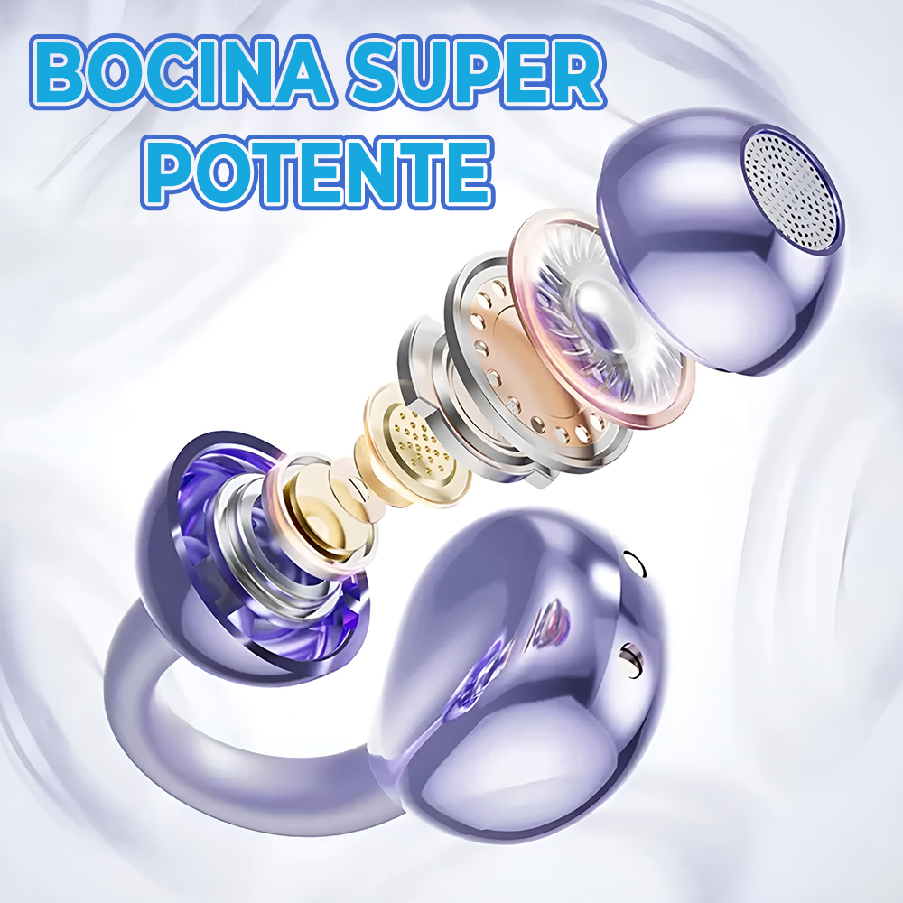 • Diseño de Oído Abierto: Escucha tu música con claridad mientras te mantienes alerta a los sonidos de tu alrededor. Ideal para actividades al aire libre y situaciones que requieren atención al entorno.