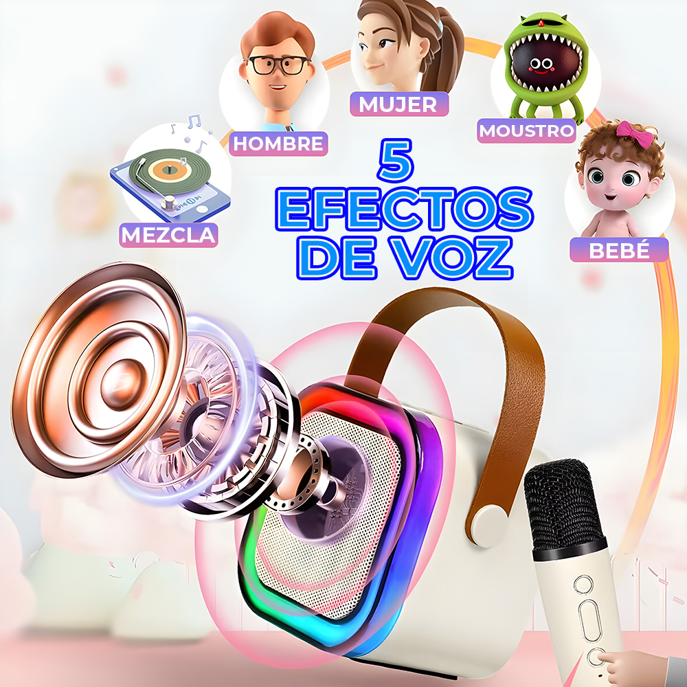 Efectos de Voz Atractivos: Con cuatro efectos de voz diferentes, desde eco hasta cambio de tono, añade diversión y variedad a tus interpretaciones.