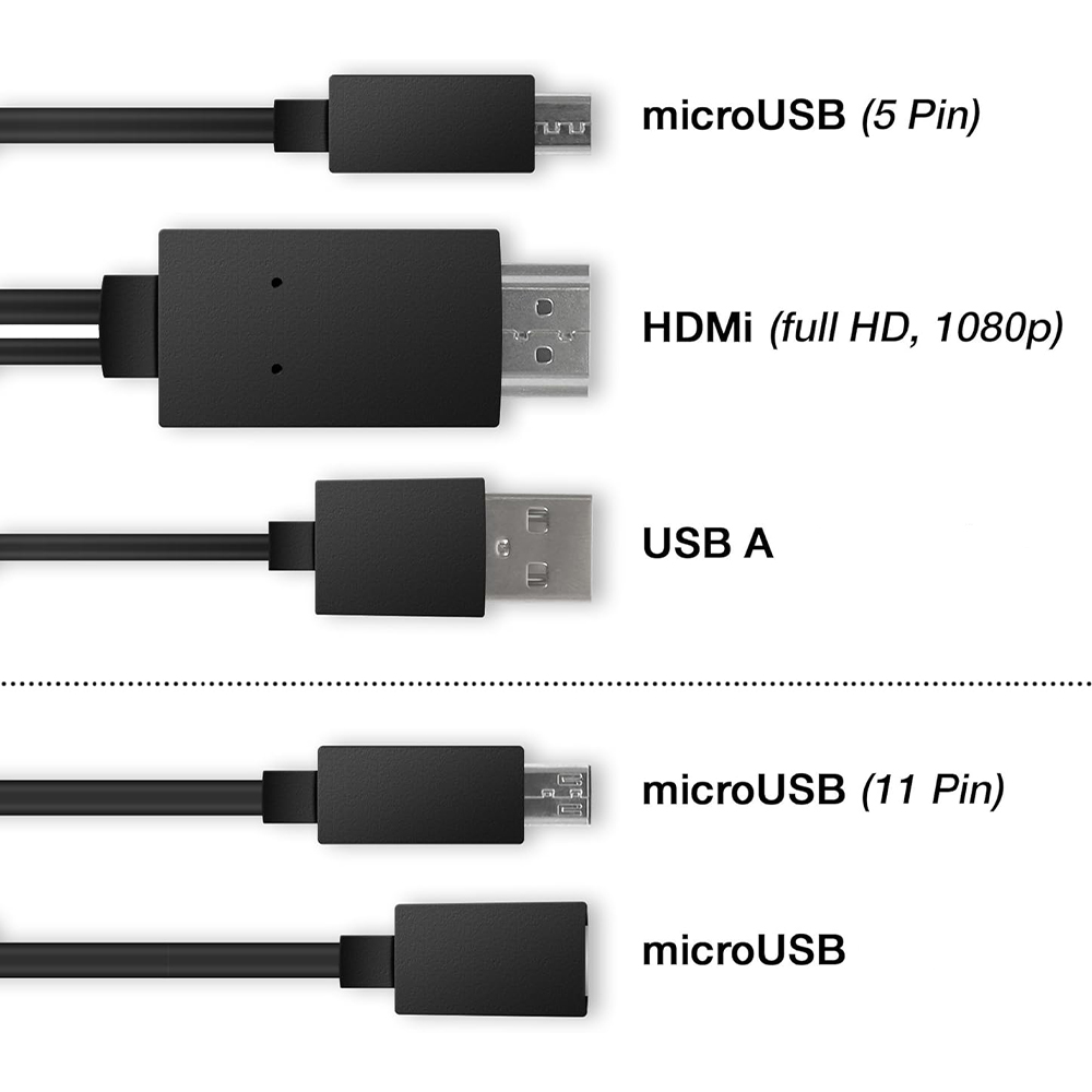 ¡Disfruta de tu contenido Android en pantalla grande! Conecta tu teléfono o tablet a tu TV con este cable MHL y empieza a disfrutar.