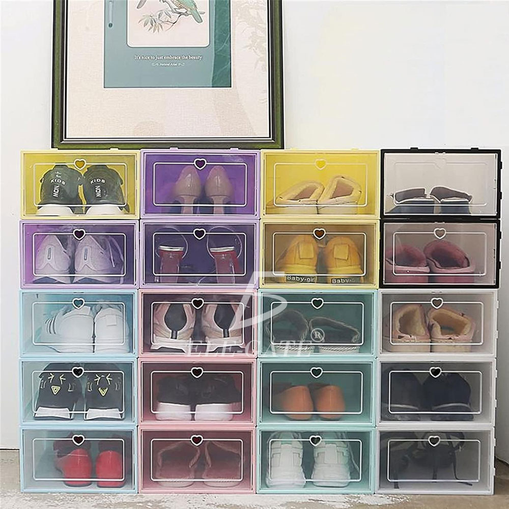 1. Caja de zapatos 6 piezas: Tamaño: 32 x 22.5 x 14 cm ,es lo suficientemente grande y resistente para adaptarse a diferentes tamaños de zapatos de hombre o mujer. Al mismo tiempo, estas cajas de zapatos tienen un diseño claro y transparente, puede encontrar rápidamente los zapatos que desea usar, uso eficiente del tiempo.