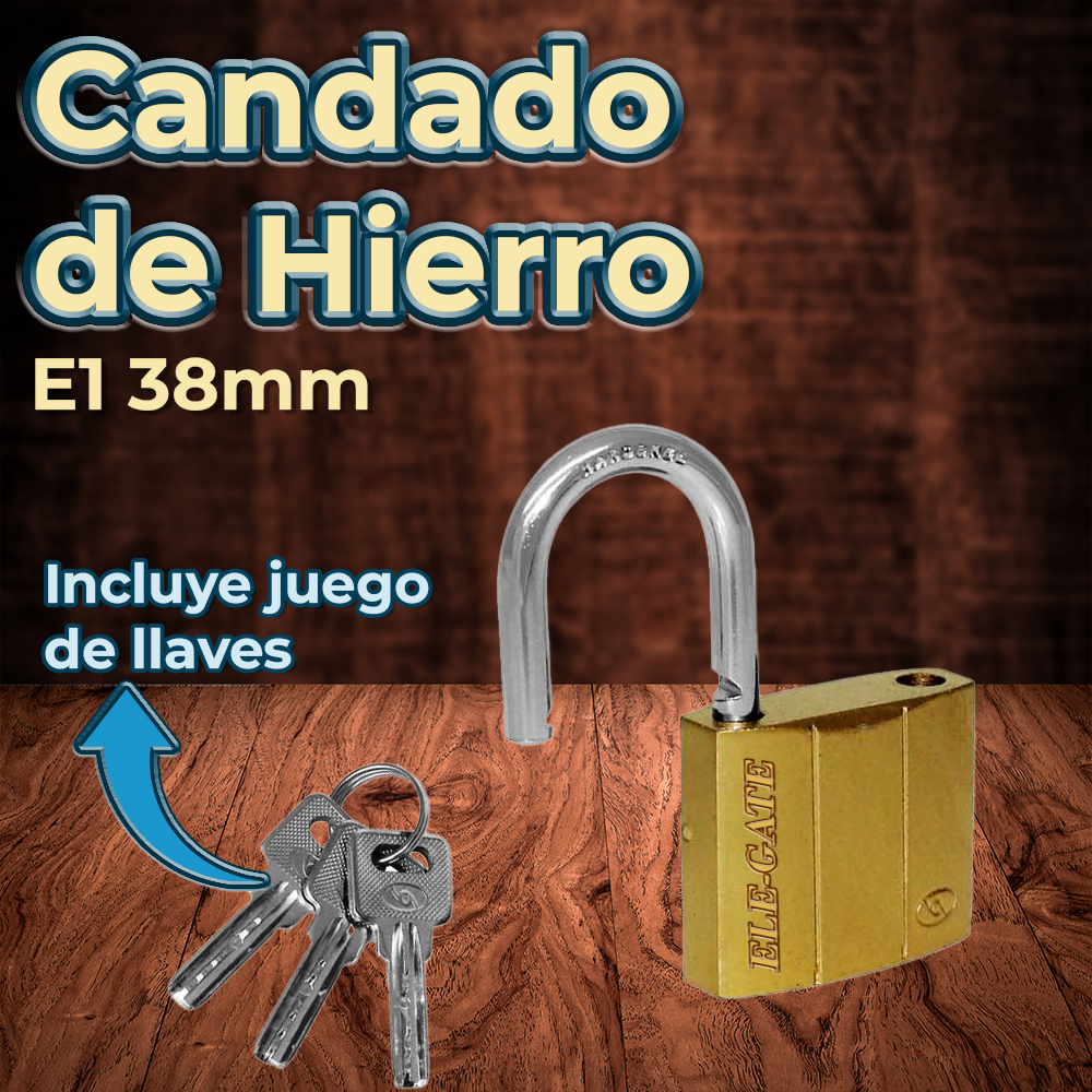 Candado de hierro de 38 mm con gancho corto, ideal para proteger espacios como el hogar, negocio, bodegas o escuelas. Diseñado para brindar seguridad y durabilidad en uso diario.