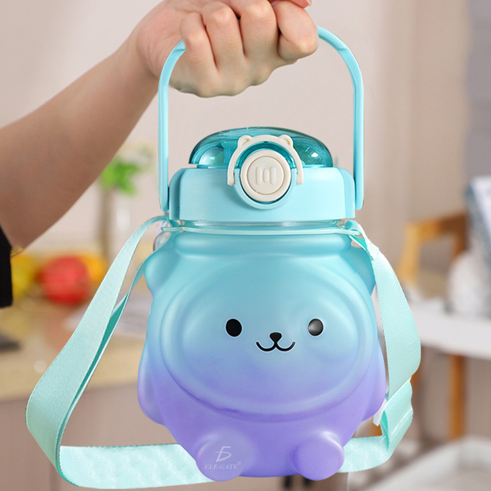 Cantimplora de Agua de 600 ml con Diseño de Oso Kawaii – Con Correa