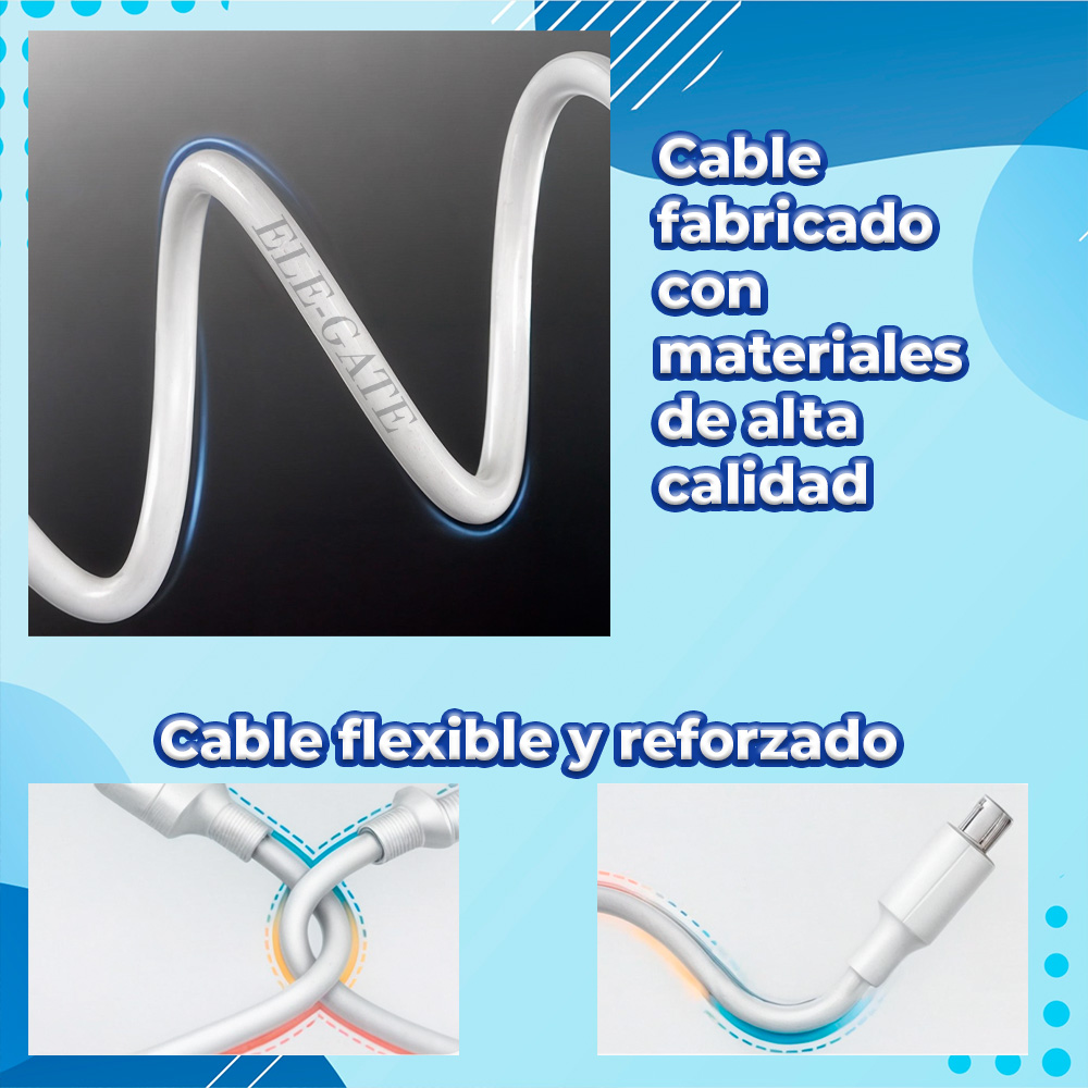 2. Cable Tipo C: Incluimos un cable tipo C de alta calidad que garantiza una conexión segura y estable entre el cargador y tus dispositivos compatibles. El cable tipo C es reversible, lo que facilita su conexión sin importar la orientación.
