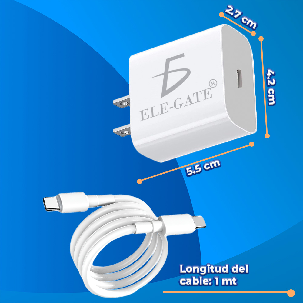 Cargador de 30 W con cable tipo C, máxima velocidad de recarga de tus aparatos