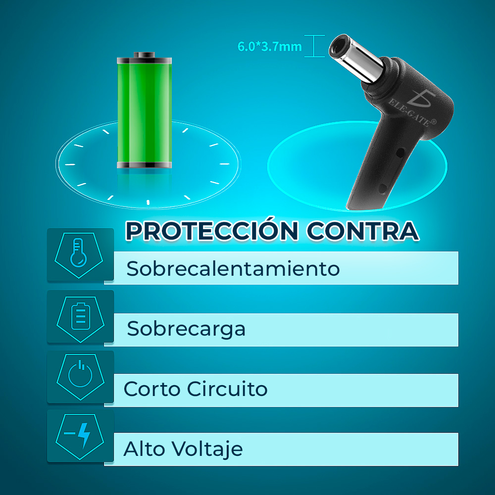 Características: Este cargador de alta potencia ofrece una carga segura y rápida, tiene un diseño compacto para fácil portabilidad, y está construido para resistir el desgaste diario.