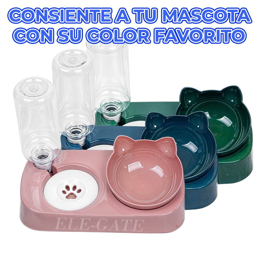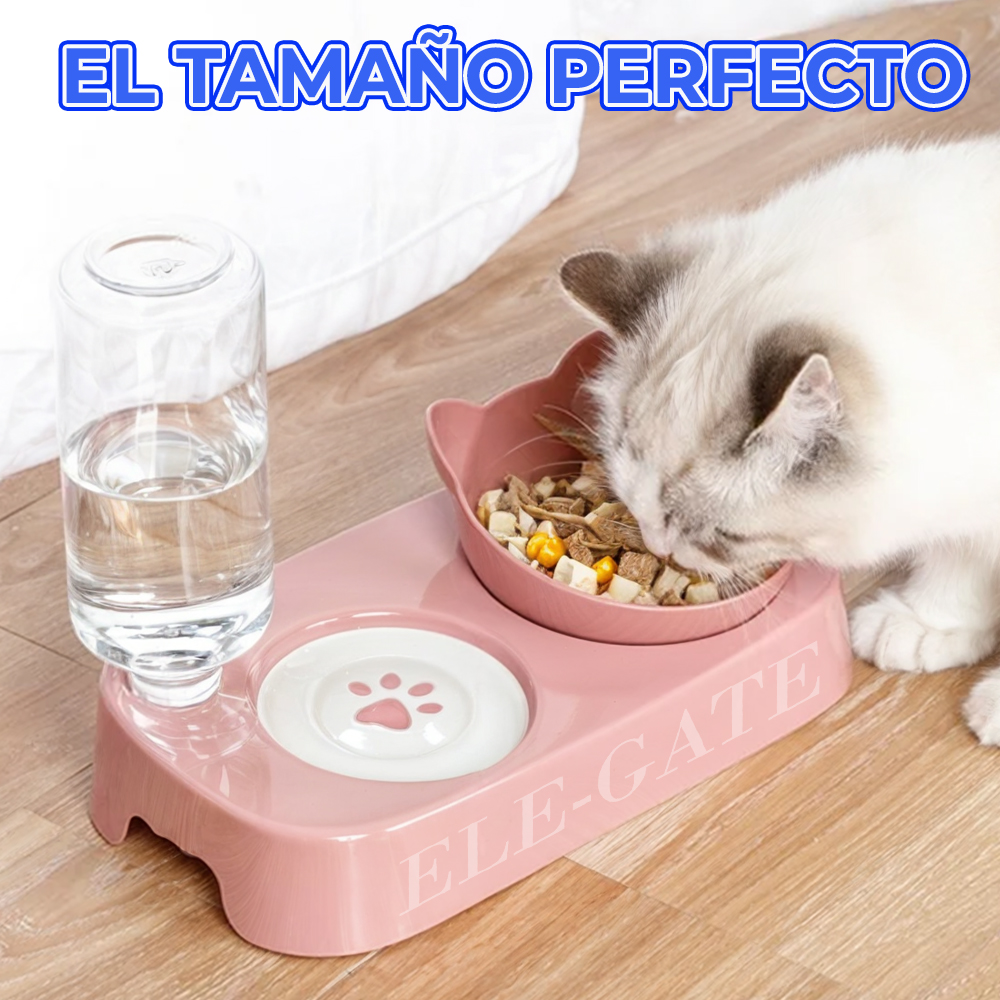 Comedero y Bebedero con Dispensador de Agua, Recipientes Automáticos Para Alimentar Mascotas Con Dispensador De Agua, Tazón Inclinado Para Agua Y Comida De Gato Con Botella De Agua Por Gravedad