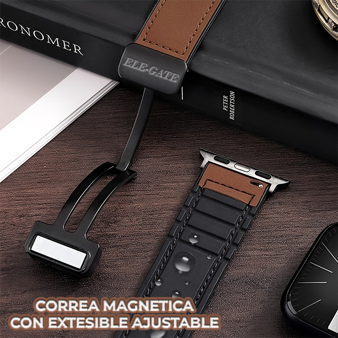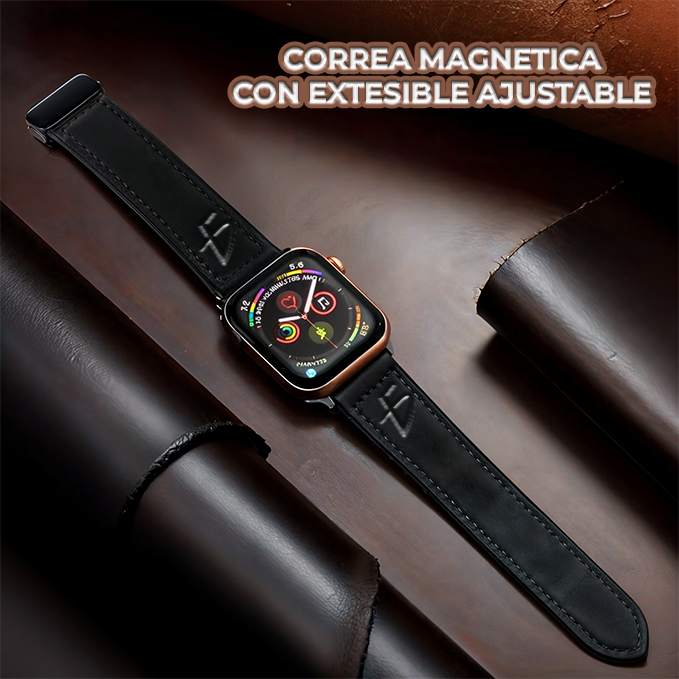 Correa de Piel Plegable Magnética Tipo Apple Watch de 42-49mm. Hecho de piel de alta calidad ultra suave, cómodo y ligero.