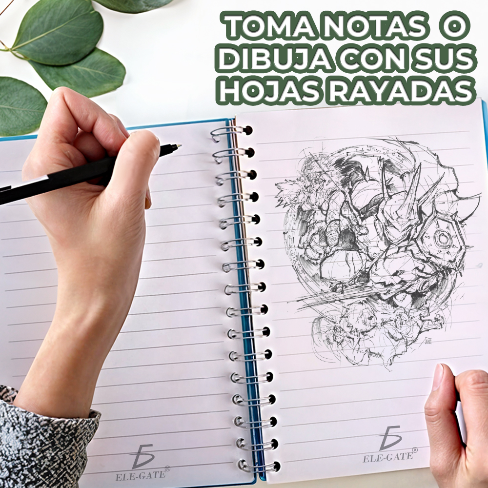 - Tapa y contraportada rígidas para mantener protegido el interior del cuaderno.