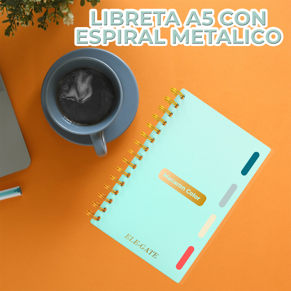 Cuaderno a Rayas de 80 Hojas con 4 Separadores de Colores Tamaño A5. Con pasta Plastificada y Espiral de Acero ideal para organizar mejor tus ideas.