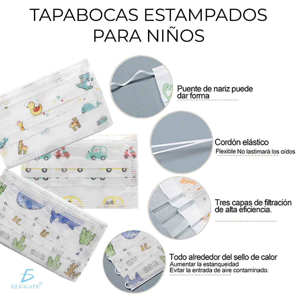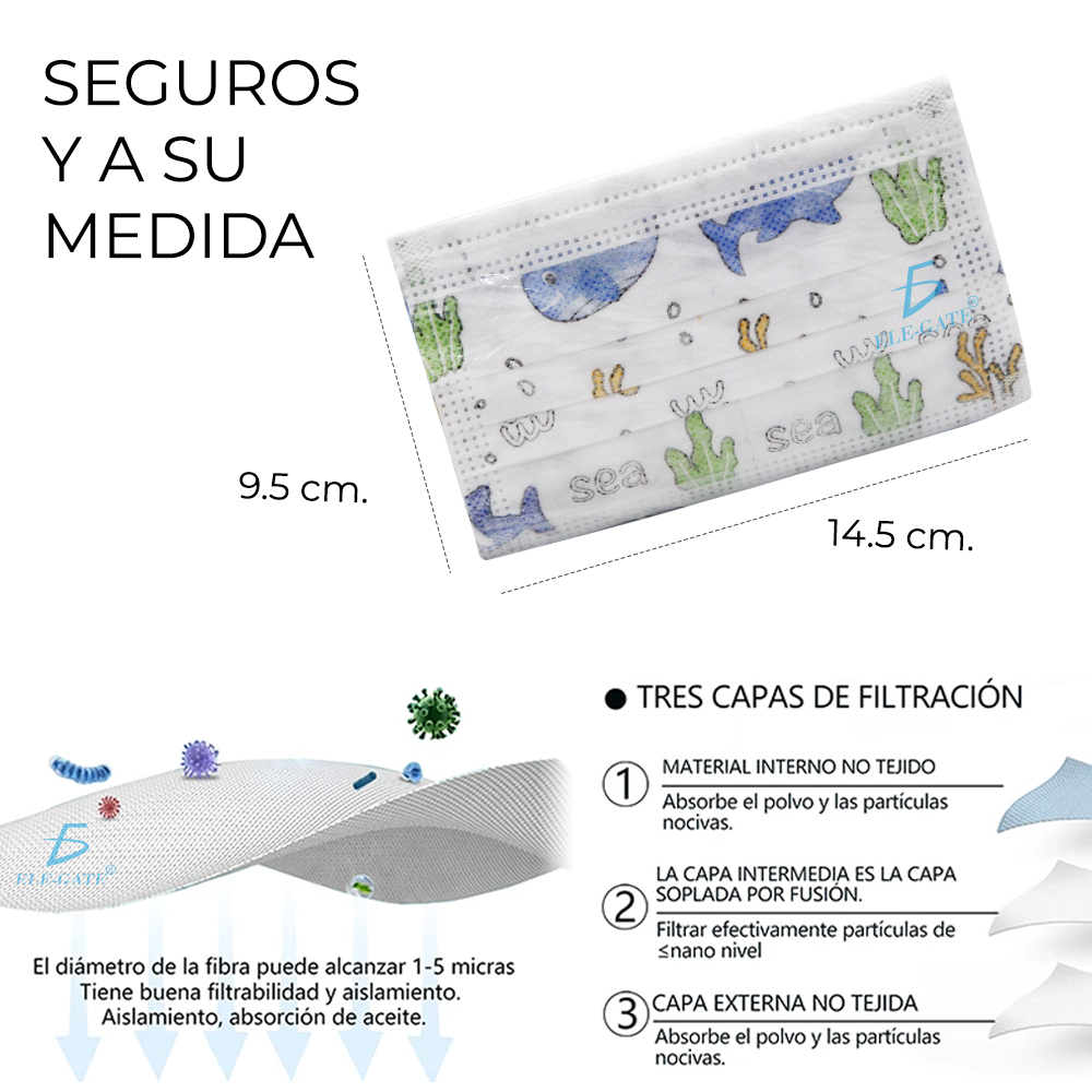 Cubrebocas 50pz Desechable 3 Capas Para Nino 0.5PESOS/PZ