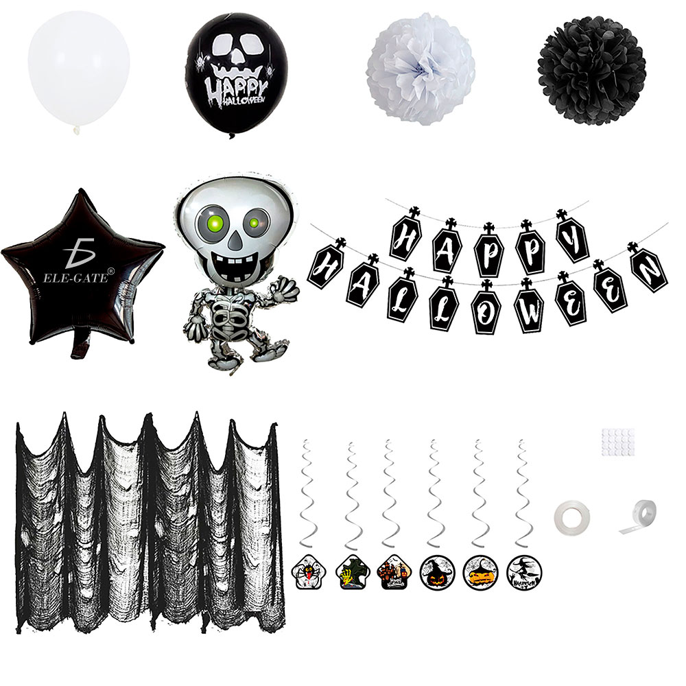 • Variedad de Decoraciones: Nuestro set incluye una amplia variedad de decoraciones, desde calabazas espeluznantes y fantasmas hasta telarañas y murciélagos. Todo lo que necesitas para crear un ambiente tenebroso.