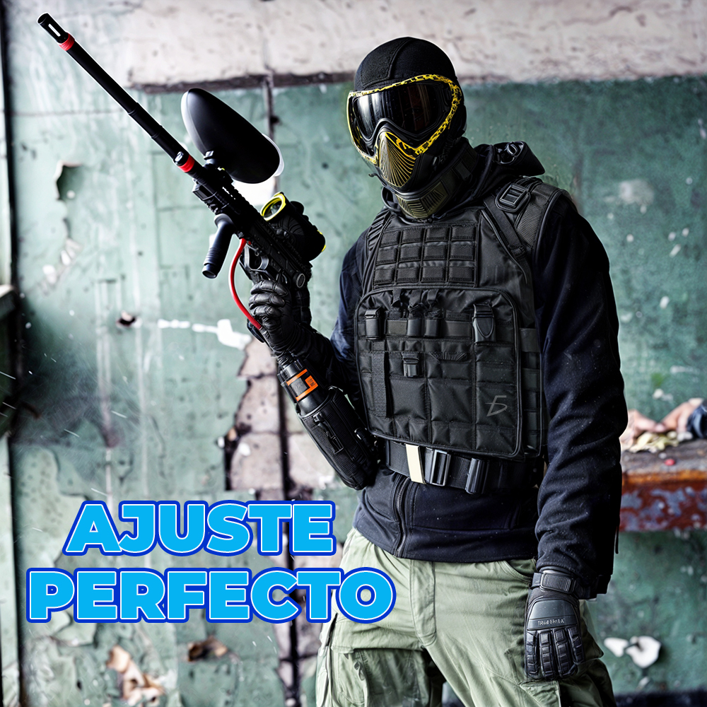 Chaleco Táctico con Ajuste de Velcro y Cordones de Alta Resistencia, diseñado especialmente para entusiastas del gotcha, deportes de tiro y actividades de supervivencia. Este chaleco combina funcionalidad, comodidad y durabilidad, ofreciendo un ajuste perfecto y soporte para el usuario durante largas jornadas de actividad física. Con múltiples características que aseguran su rendimiento, es el equipo ideal para quienes buscan resistencia, versatilidad y seguridad en sus entrenamientos y aventuras al aire libre.