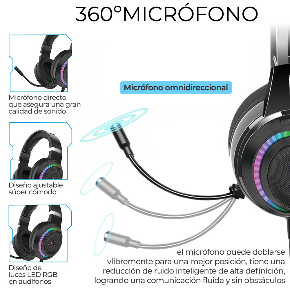 Diadema Gamer Rgb Led Colores Audifonos Ps4 Xbox Pc