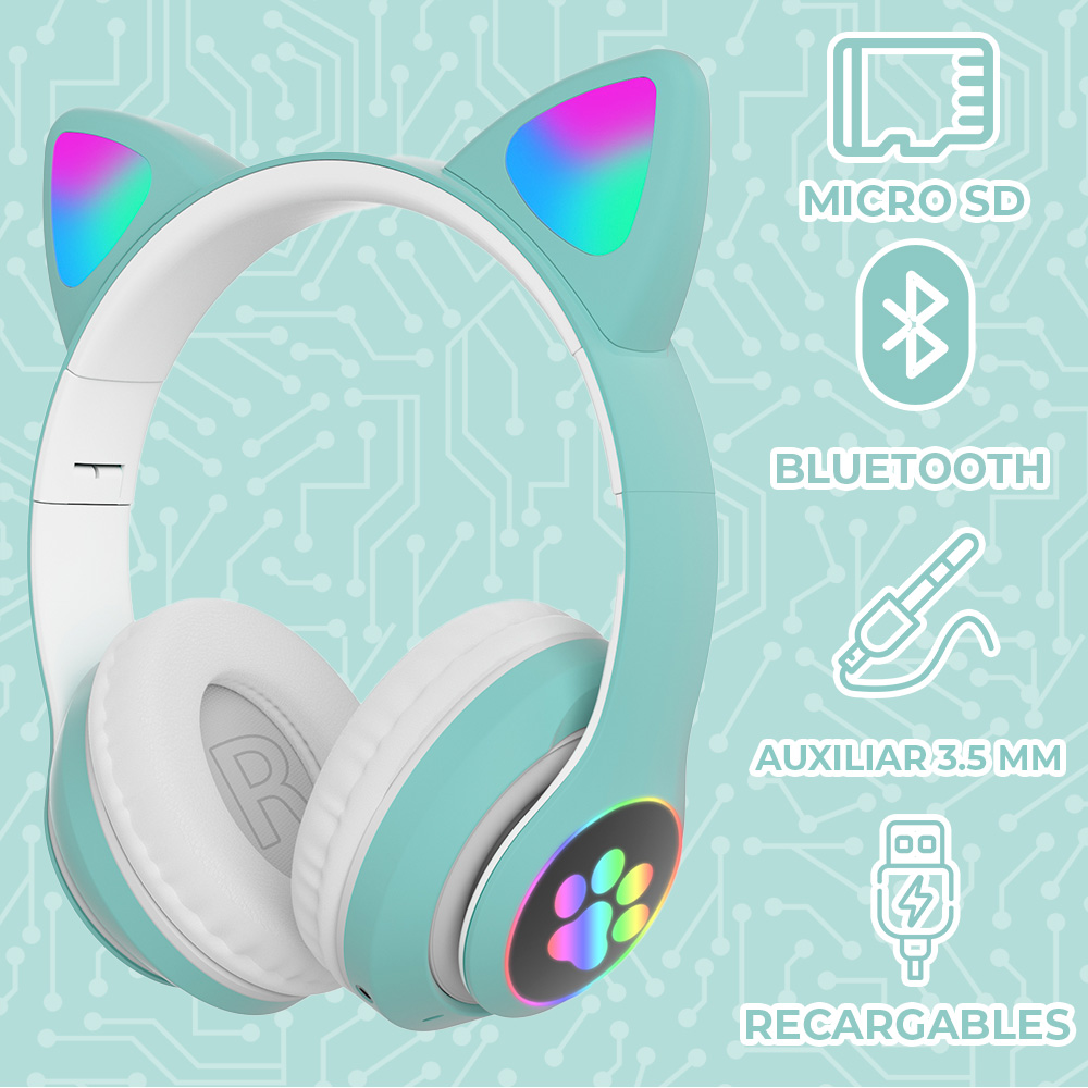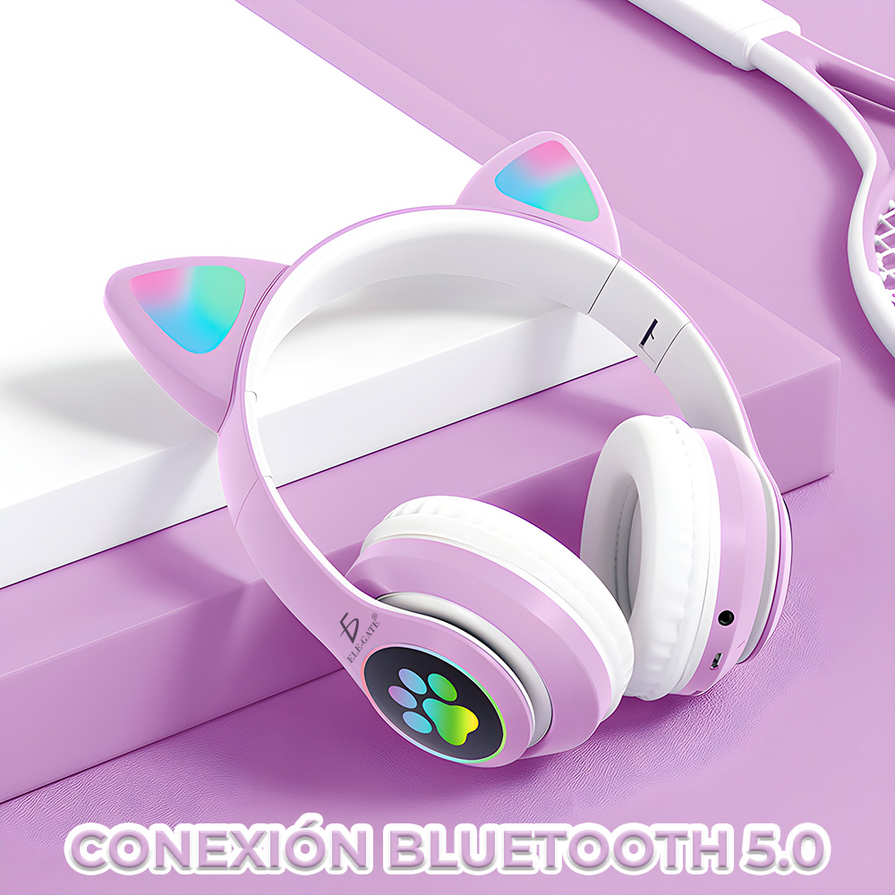 Diadema Gato Bluetooth Auriculares Colorido Led Luminoso
