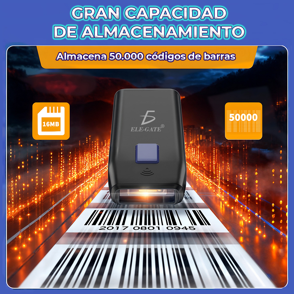 Compatibilidad Universal: Capaz de leer cualquier tipo de código de barras, desde los estándar hasta los más complejos, incluidos los códigos QR, asegurando una compatibilidad completa con tus necesidades de escaneo.