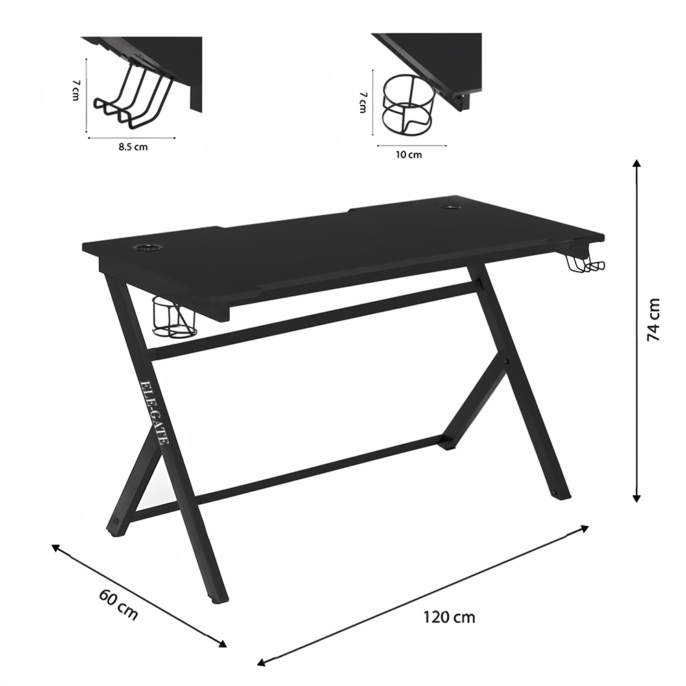 El paquete incluye:1 escritorio para juegos 1 portavasos 1 porta audífonos y stickers - 1 manual de instrucciones.