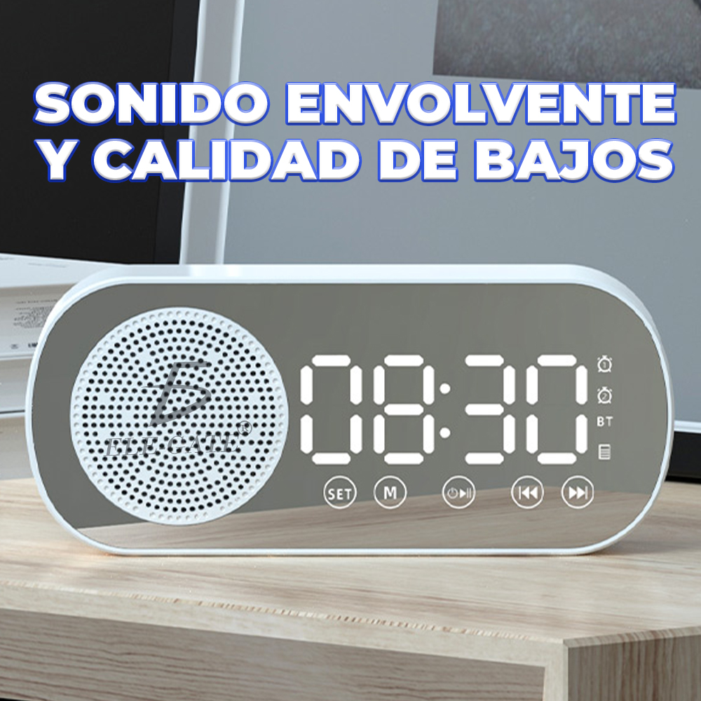 Con su micrófono incorporado, puedes disfrutar de llamadas manos libres con una claridad de voz excepcional. Además, su función de reloj de alarma te permite despertarte con tu música favorita o con la radio FM integrada, lo que te brinda una manera cómoda y personalizada de comenzar tu día.