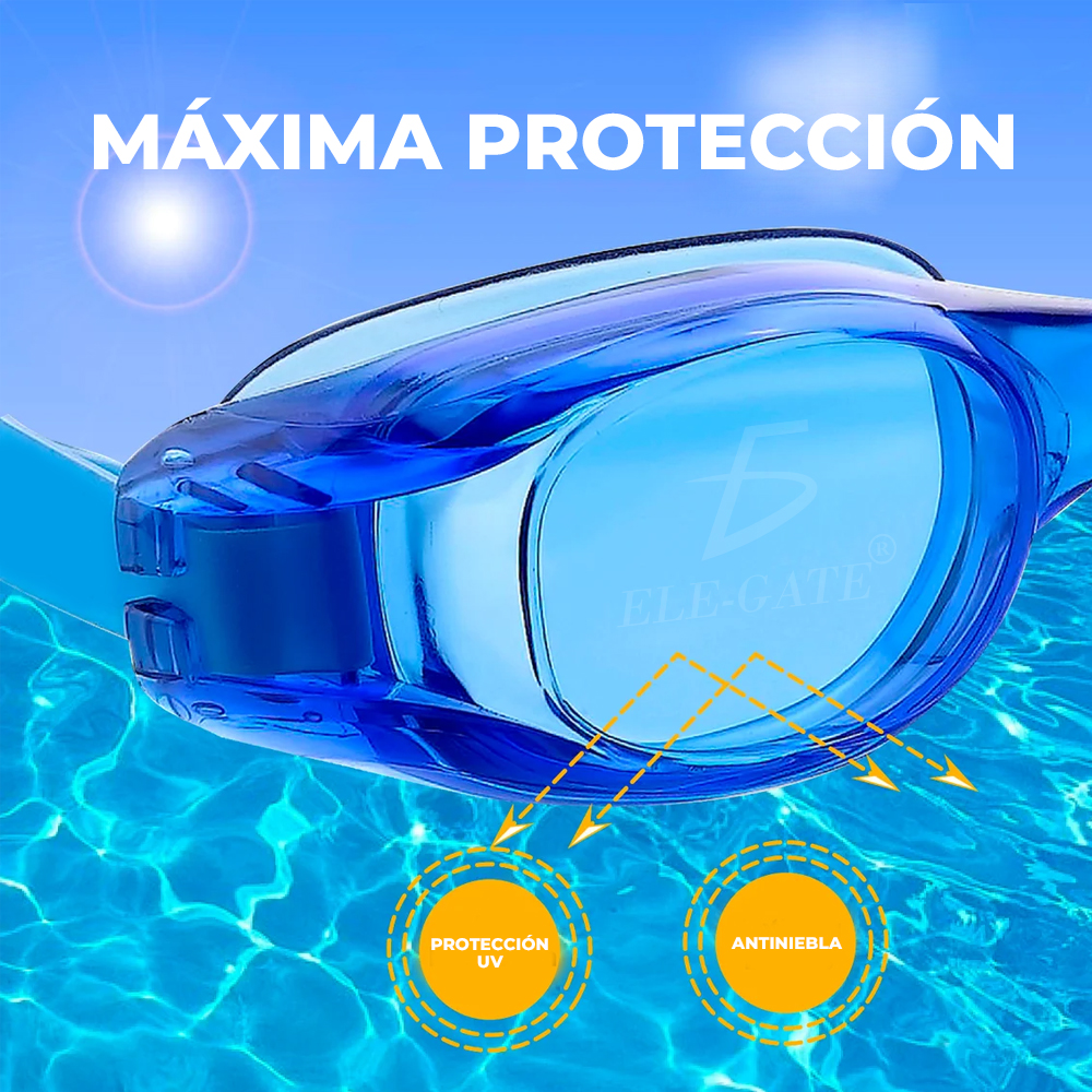 Lentes amigables con los niños: elige entre colores de gafas, cada una con lentes de policarbonato premium. Proporcionan protección UV y capacidades antivaho, reduciendo el deslumbramiento en la piscina, océano o lago