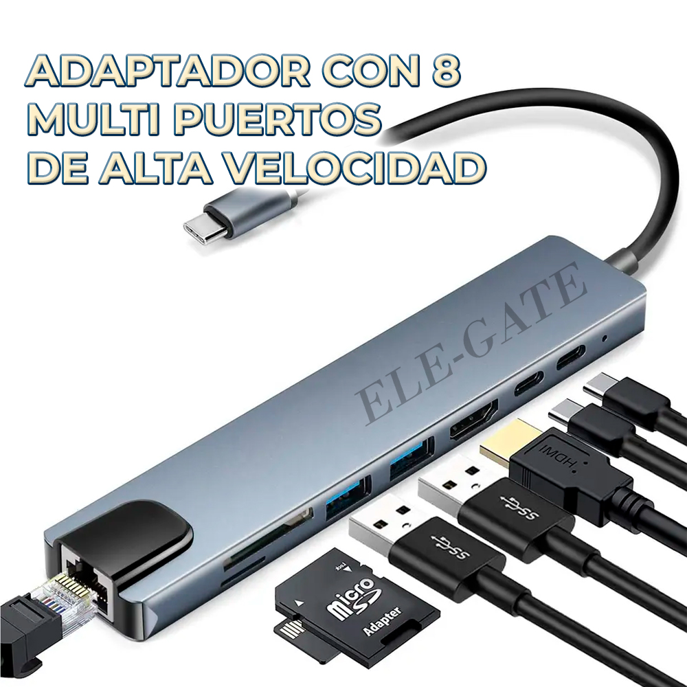 Hub USB 3.0 de Alta Velocidad con 8 Puertos y Salida Tipo C – Velocidad de Transferencia de 5 Gbps