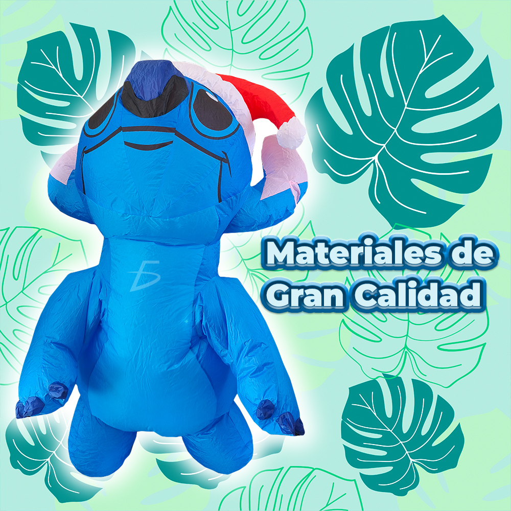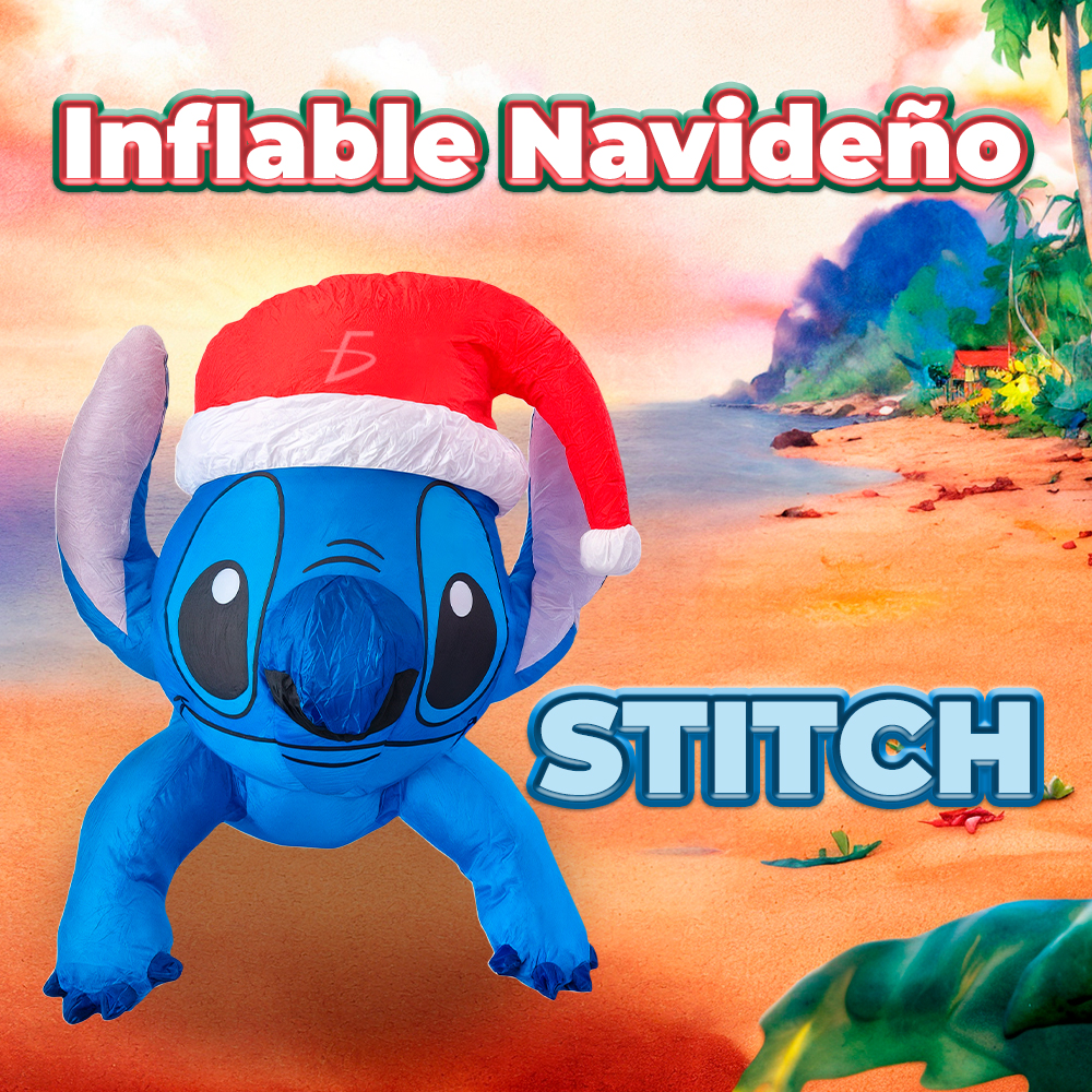 Llena tus celebraciones de color y ternura con el Inflable de Stitch con Gorro Navideño, el complemento perfecto para destacar esta Navidad. ✨