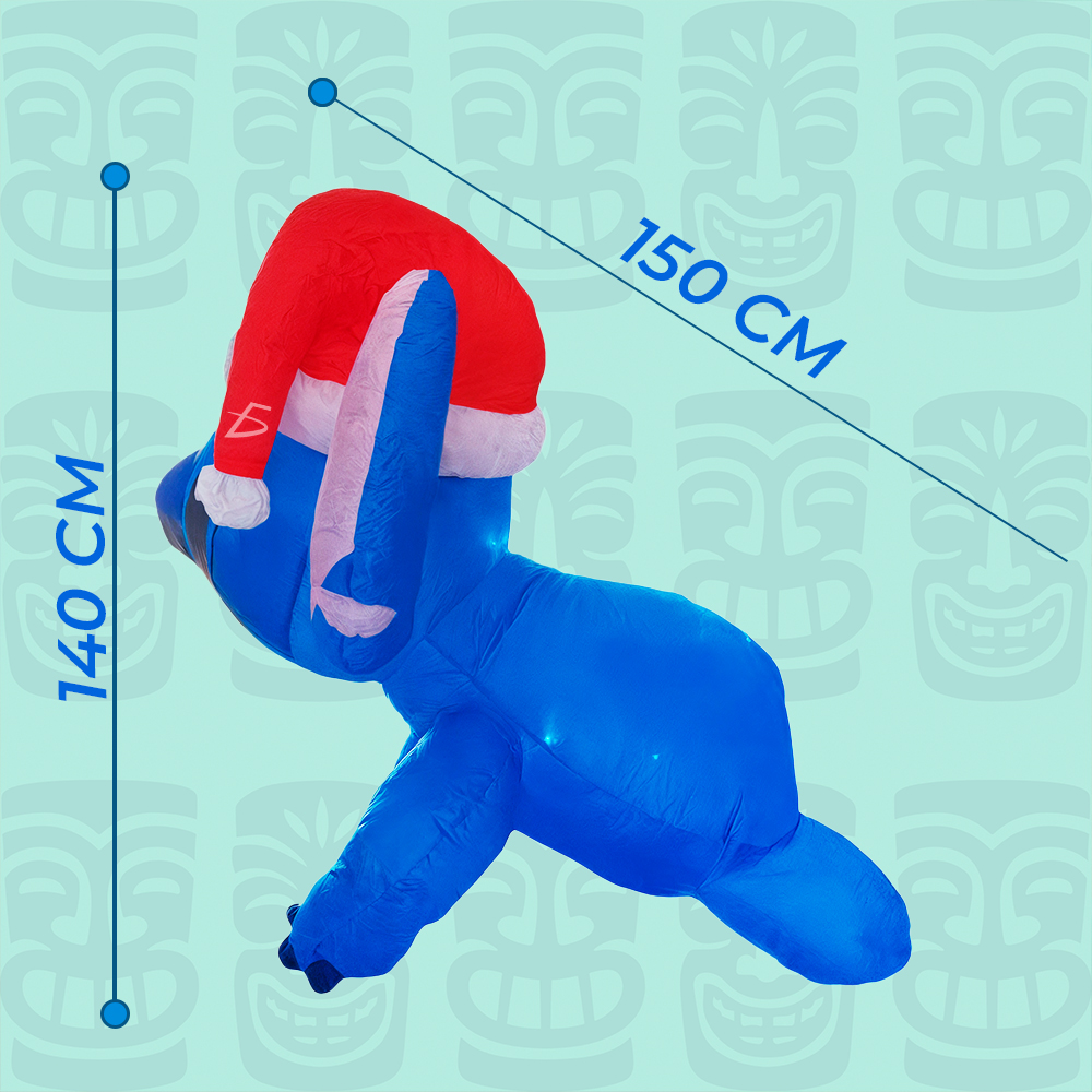 Decora tus espacios con el encanto de Stitch en versión navideña. Este inflable es perfecto para crear un ambiente lleno de alegría y espíritu festivo, tanto en interiores como exteriores.