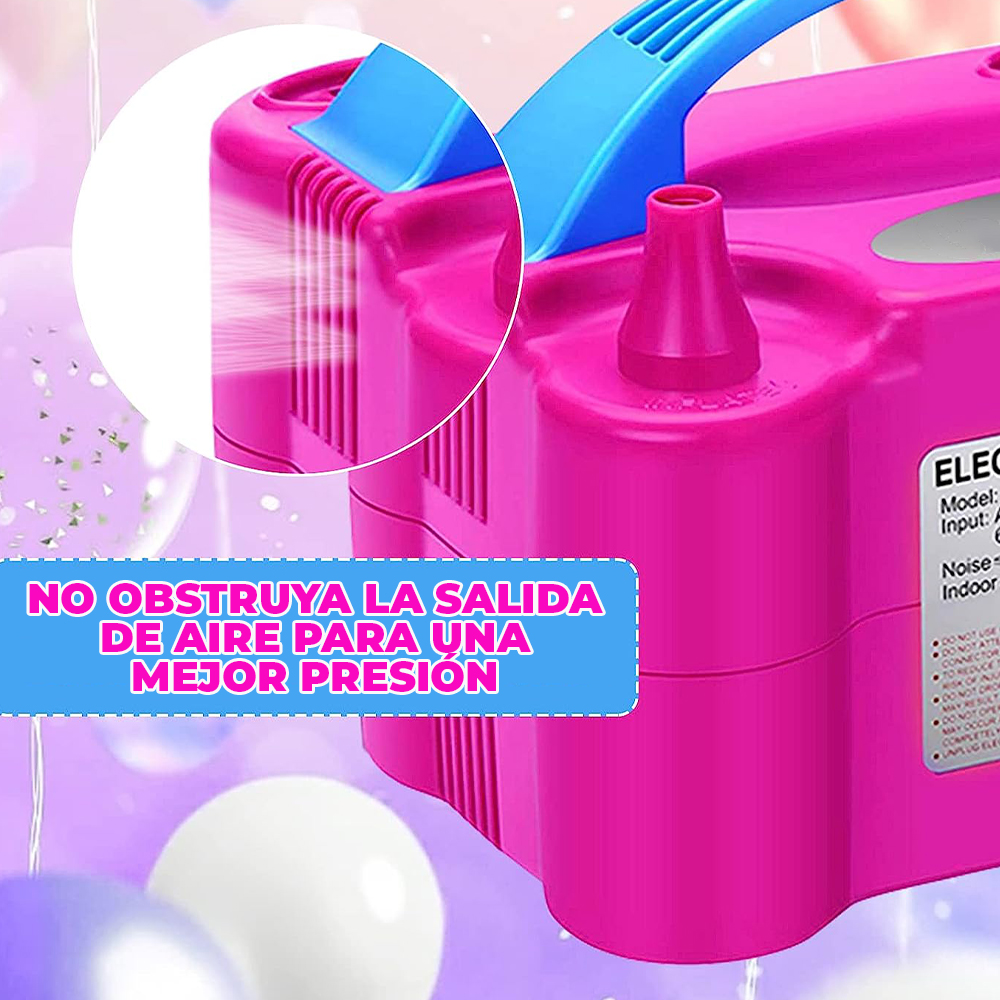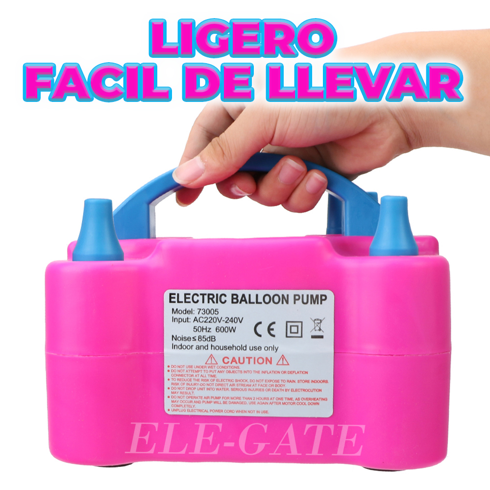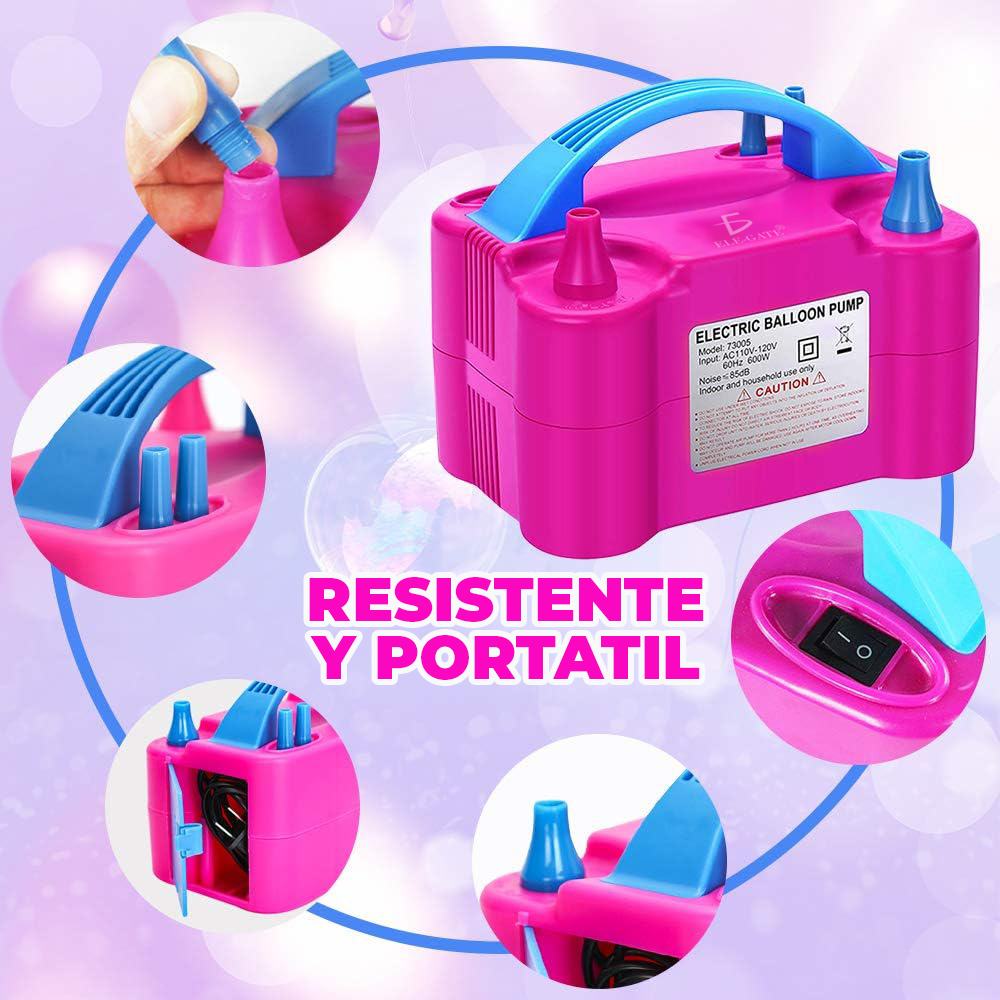 - Fácil de usar: Simplemente conecta el inflador y coloca la boquilla en la abertura del globo.