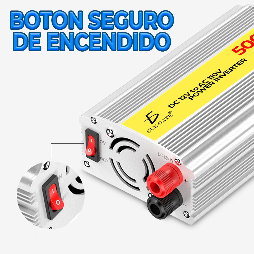El inversor de corriente 500W convierte la corriente continua de 12V a corriente alterna de 110V, brindándote la posibilidad de utilizar tus dispositivos electrónicos en lugares donde no haya una toma de corriente convencional. Con una potencia de salida de 500W, este inversor es adecuado para alimentar dispositivos como laptops, televisores, equipos de sonido, cargadores de teléfonos y más. Su onda sinusoidal modificada garantiza la compatibilidad con la mayoría de los dispositivos electrónicos. Además, cuenta con puertos de carga USB y enchufes de corriente alterna para cargar y utilizar múltiples dispositivos simultáneamente. Su diseño compacto y portátil facilita su transporte y almacenamiento. Asegúrate de tener energía en cualquier lugar con el inversor de corriente 500W.