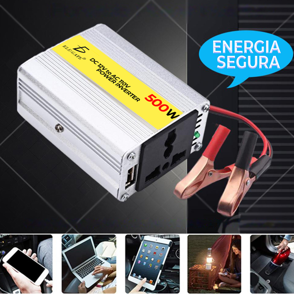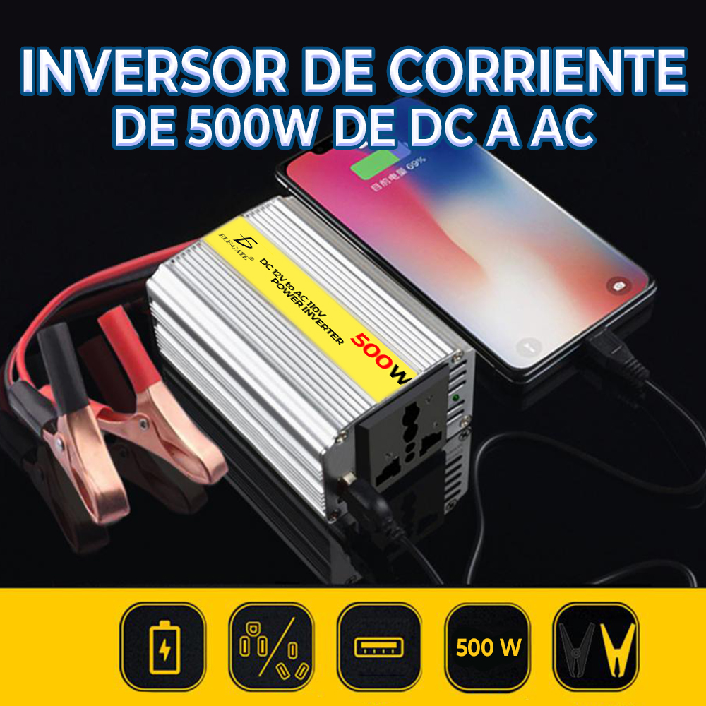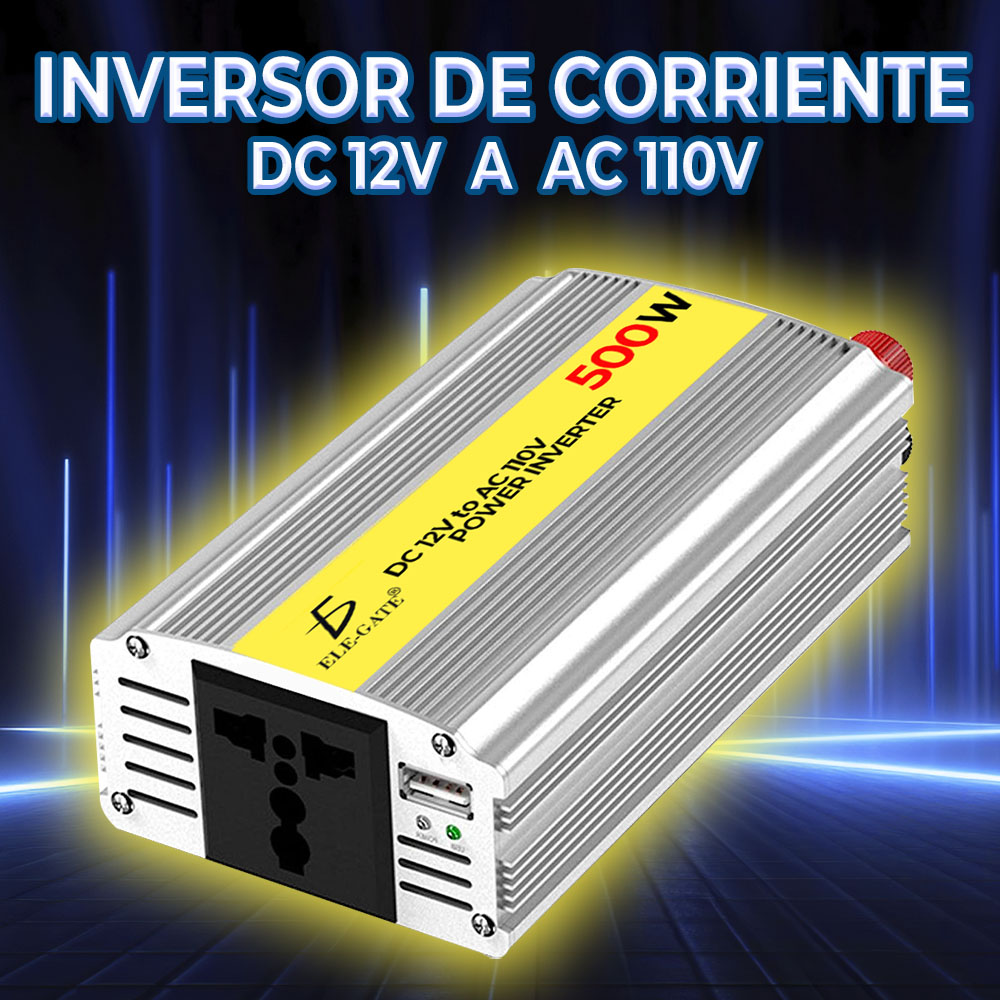 El inversor de corriente 500W convierte la corriente continua de 12V a corriente alterna de 110V, brindándote la posibilidad de utilizar tus dispositivos electrónicos en lugares donde no haya una toma de corriente convencional. Con una potencia de salida de 500W, este inversor es adecuado para alimentar dispositivos como laptops, televisores, equipos de sonido, cargadores de teléfonos y más. Su onda sinusoidal modificada garantiza la compatibilidad con la mayoría de los dispositivos electrónicos. Además, cuenta con puertos de carga USB y enchufes de corriente alterna para cargar y utilizar múltiples dispositivos simultáneamente. Su diseño compacto y portátil facilita su transporte y almacenamiento. Asegúrate de tener energía en cualquier lugar con el inversor de corriente 500W.