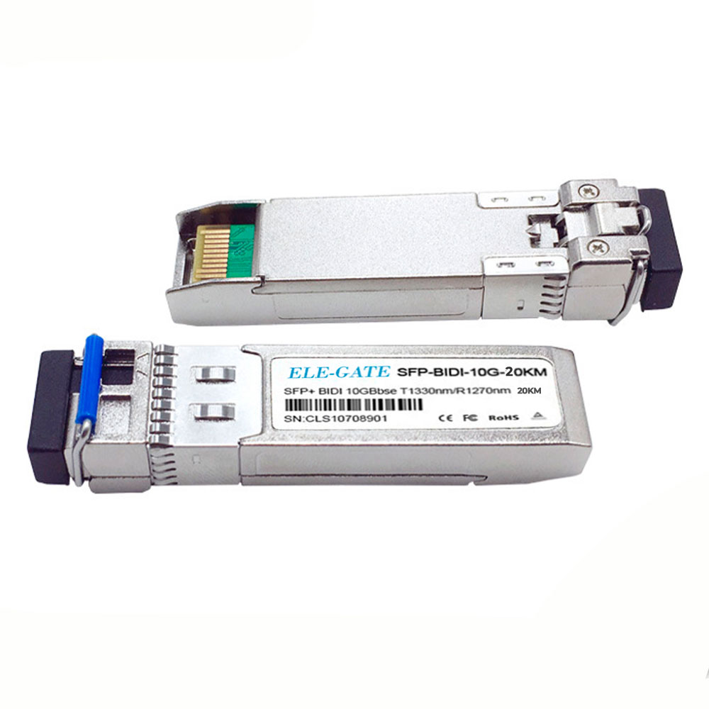 - Transceptor SFP+ Bidi, 10Gb/s SFP+ Bidi, conector LC único, longitud de onda: Up: TX1270nm/RX1330nm; Down: TX1330nm/RX1270nm, hasta 20km.