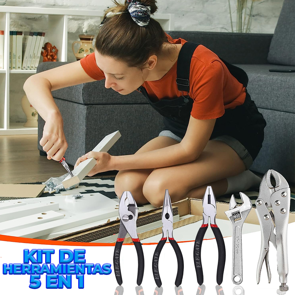- Tipo de alicates incluidos: Alicates de punta fina, alicates de corte diagonal, alicates de punta plana, alicates de punta larga, alicates ajustables