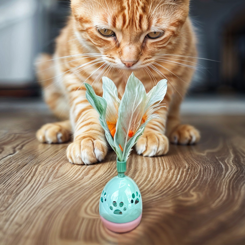 ¡Estas cualidades hacen que nuestro Juguete en Forma de Huevo con Plumas sea una opción ideal para el entretenimiento y el ejercicio de tu gato!