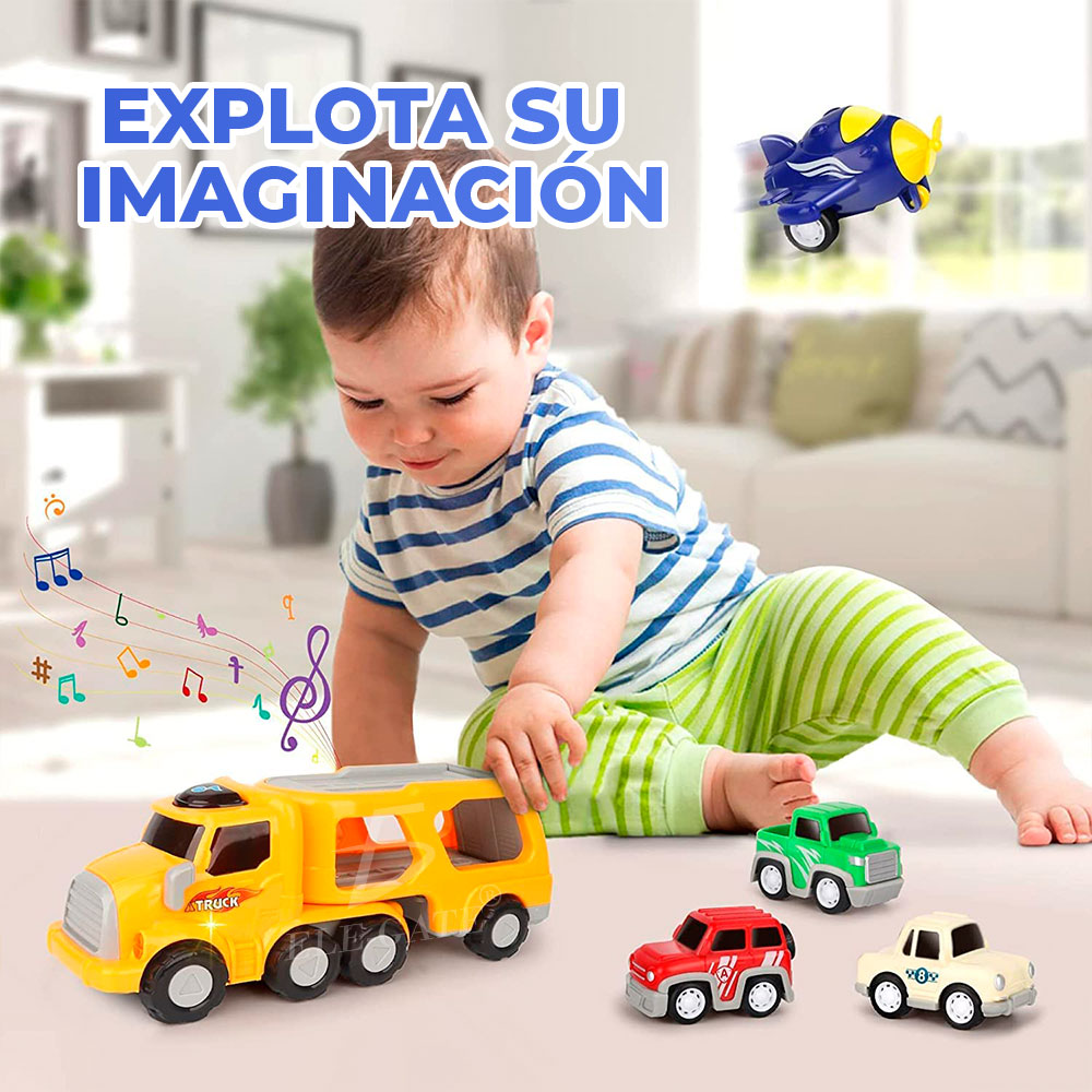 Juquete Camion Con Luz Y Traccion 4 Vehicluos Divertidos
