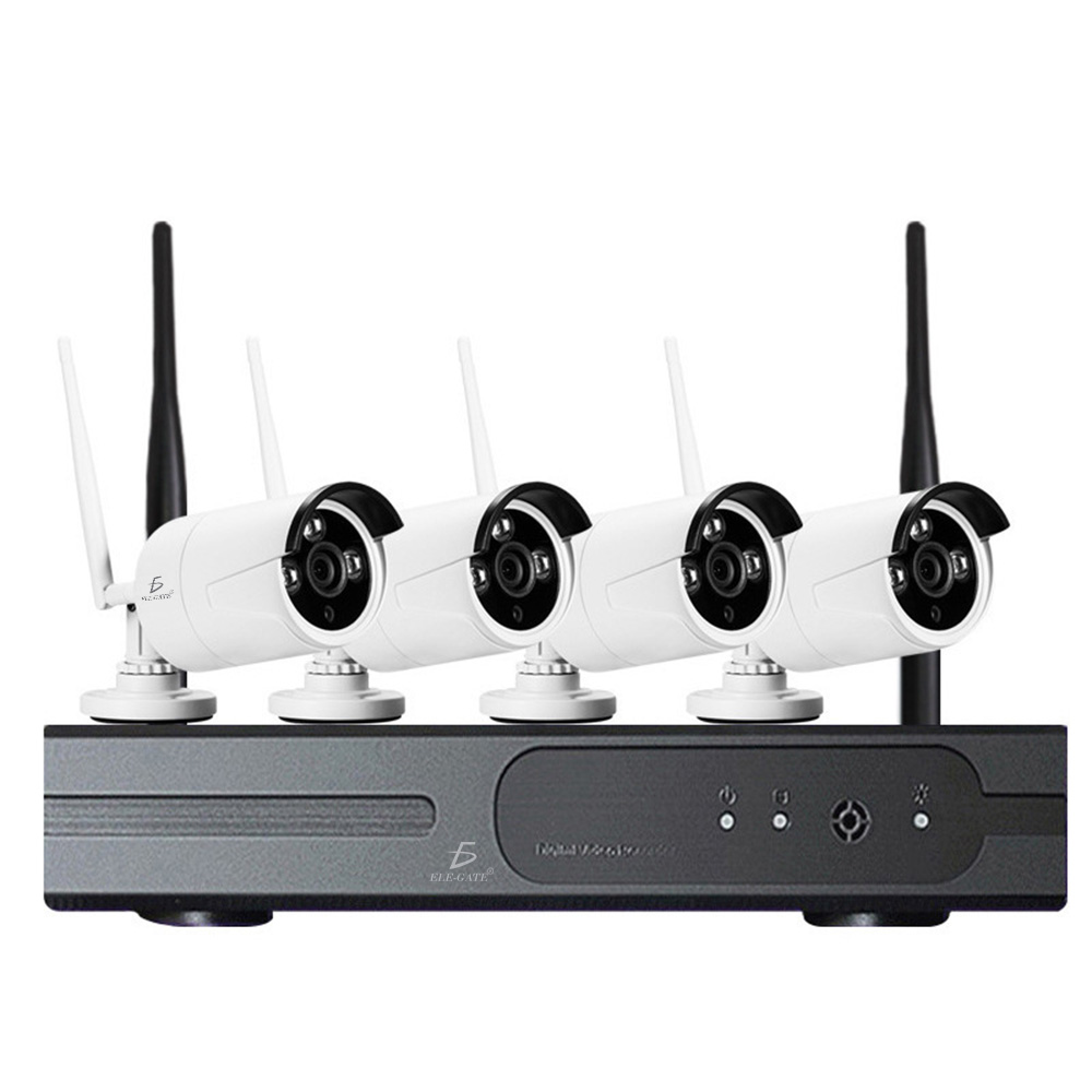 El sistema incluye 4 cámaras inalámbricas, visión nocturna. El sistema inalámbrico no significa que puede usar el sistema sin ningún cable. La fuente de alimentación aún se necesita para encender las cámaras y el NVR