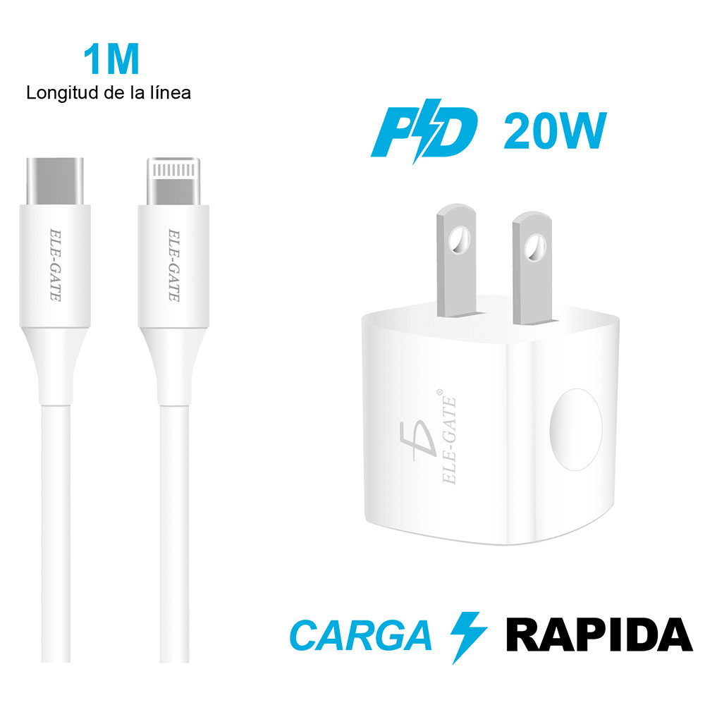 Carga rápida PD: Con una potencia de salida de 20W, este cargador ofrece una carga rápida y eficiente para dispositivos compatibles, reduciendo significativamente el tiempo de carga.