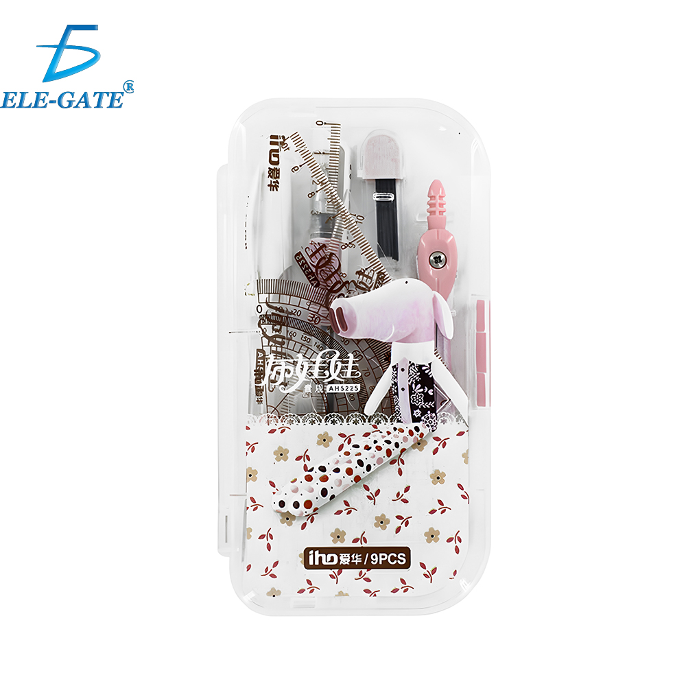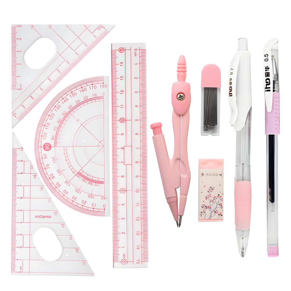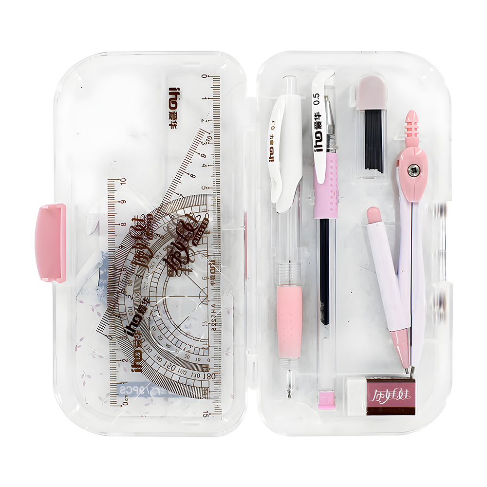 Kit de Geometría de 9 piezas con Colores Pasteles y Estuchera Trasparente