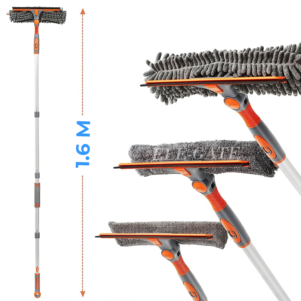 Equipo de lavado de ventanas telescópico de 62 pulgadas con cabezal flexible para vidrio de coche interior/exterior, 4 almohadillas para orejas.