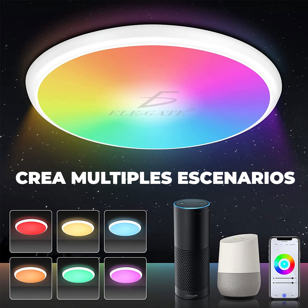 La luces de techo inteligente rgb diseñada con más de 16 millones de colores para elegir, escena DIY, 2700K-6500K atenuación de blanco cálido a blanco frío. En sincronía con la música, el color y el patrón de la luz cambia con la percepción del ritmo del sonido y la música,