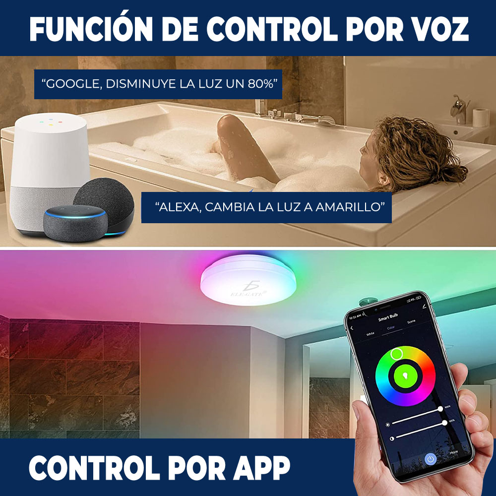 La luz de techo inteligente funciona con Google Home y Alexa. Bajo la red WiFi (compatible con 2,4 GHz), el control remoto se puede realizar fácilmente a través de la aplicación Tuya Smart compatible con Android e IOS. Permite el control por voz, solo necesita emitir un comando de voz para encender/apagar o atenuar/iluminar su luz de techo LED inteligente.