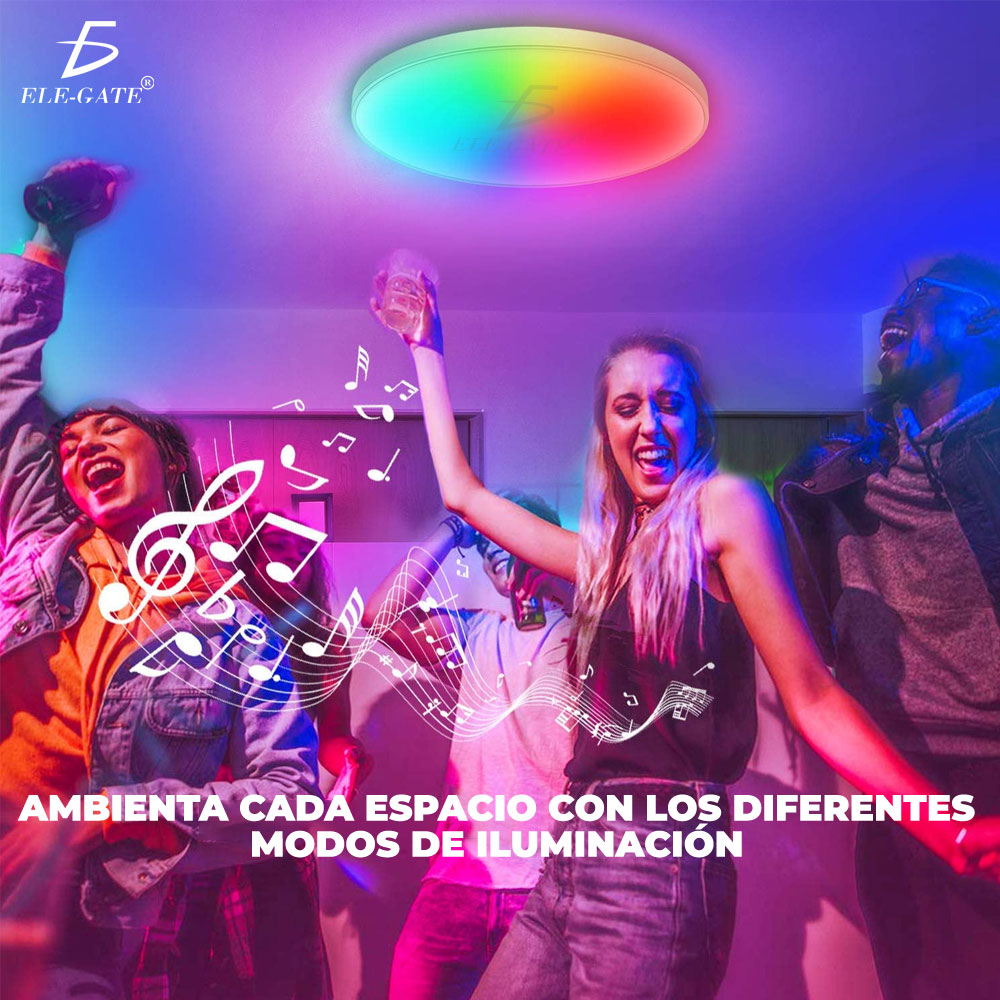 La luces de techo inteligente rgb diseñada con más de 16 millones de colores para elegir, escena DIY, 2700K-6500K atenuación de blanco cálido a blanco frío. En sincronía con la música, el color y el patrón de la luz cambia con la percepción del ritmo del sonido y la música,