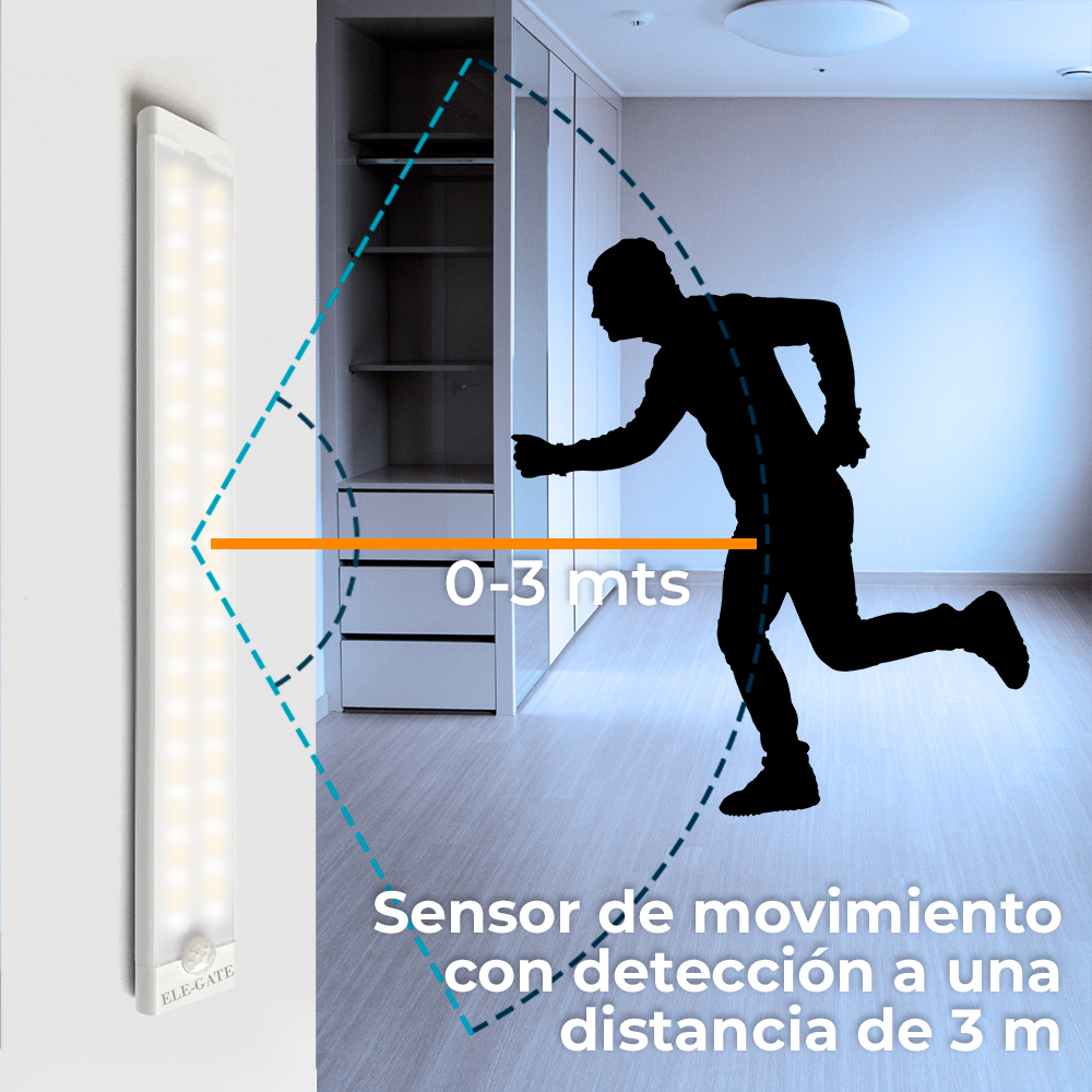 • Sensor de Movimiento: Con un ángulo de detección de 120° y un rango de 3 metros.