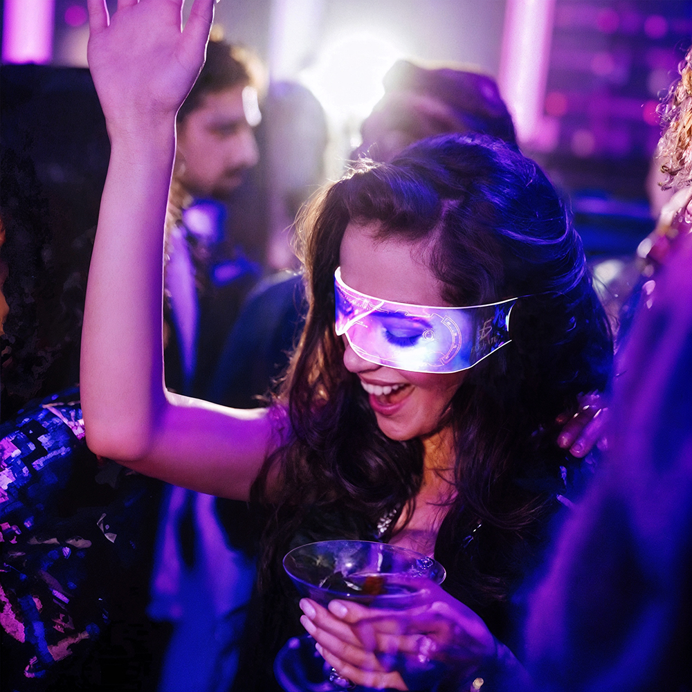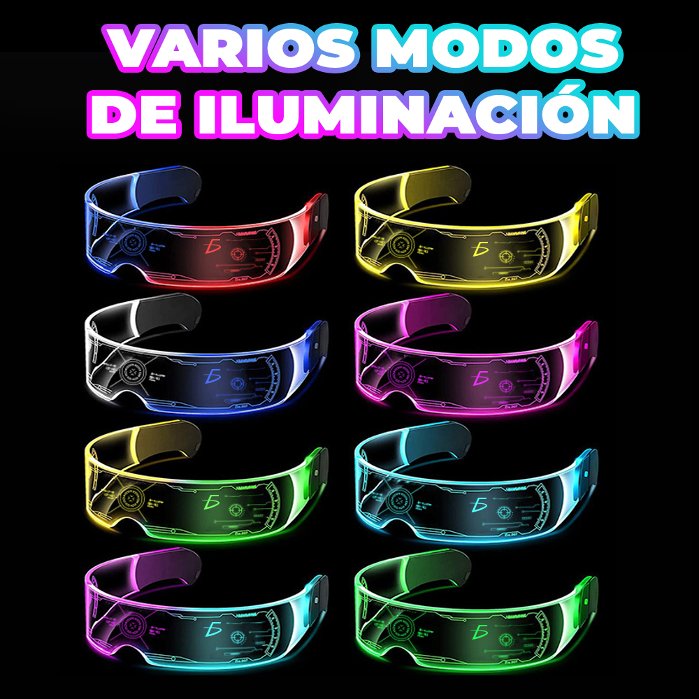 - Anteojos LED para adultos: con estas anteojos Cyberpunk estilo futurista, se ve muy genial cuando se ilumina en un ambiente oscuro. Con divertidas anteojos luminosas LED, serás el centro de atención de la multitud.