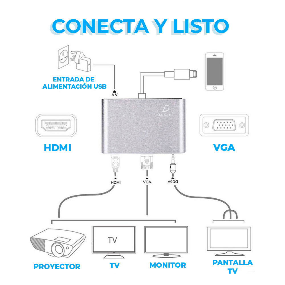 1. Convertidor para adaptador de carga tohdmi/vga/av/hdtv/otg compatible con lightning