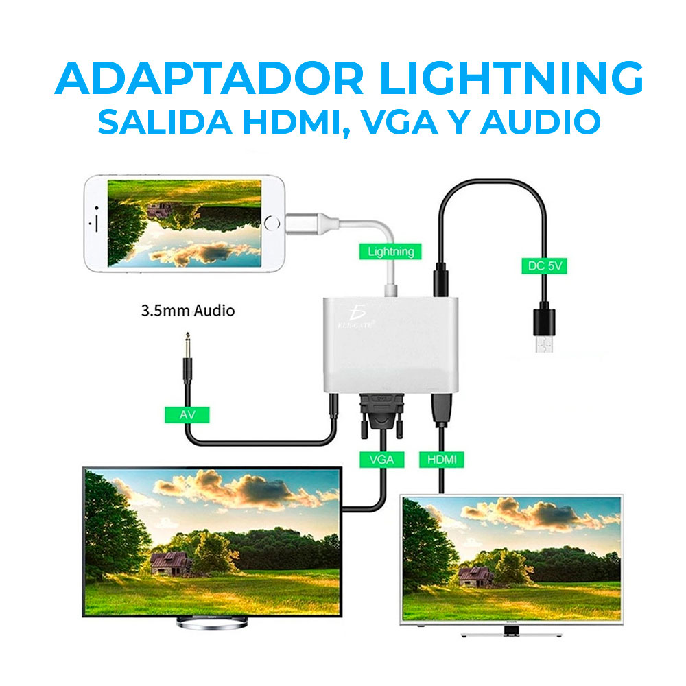 1. Convertidor para adaptador de carga tohdmi/vga/av/hdtv/otg compatible con lightning