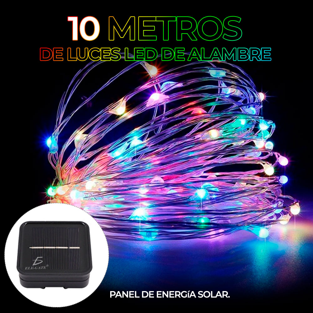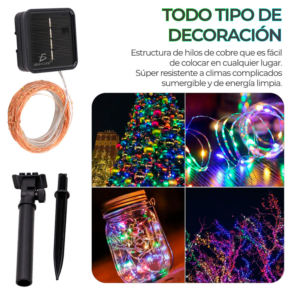 Luces Serie Solar Exterior Fiesta Navidad Tira 10 Metros
