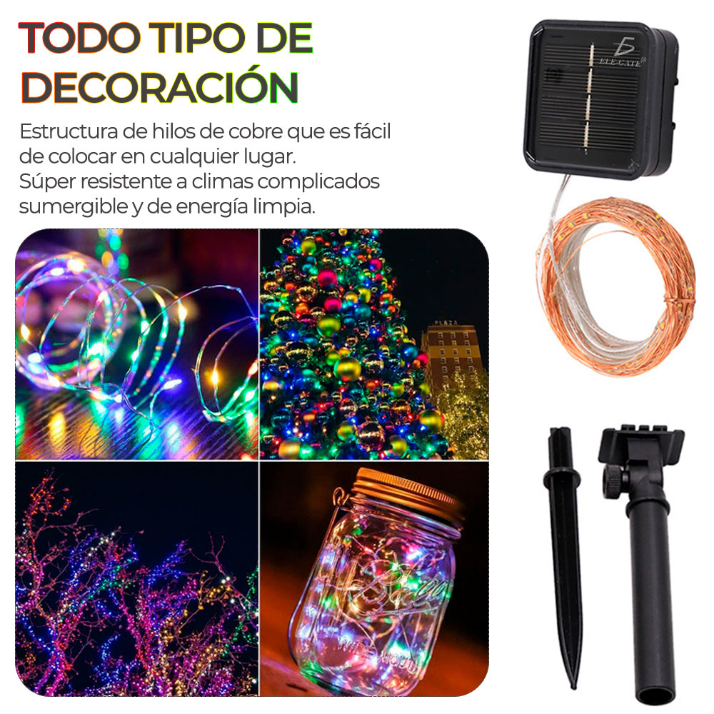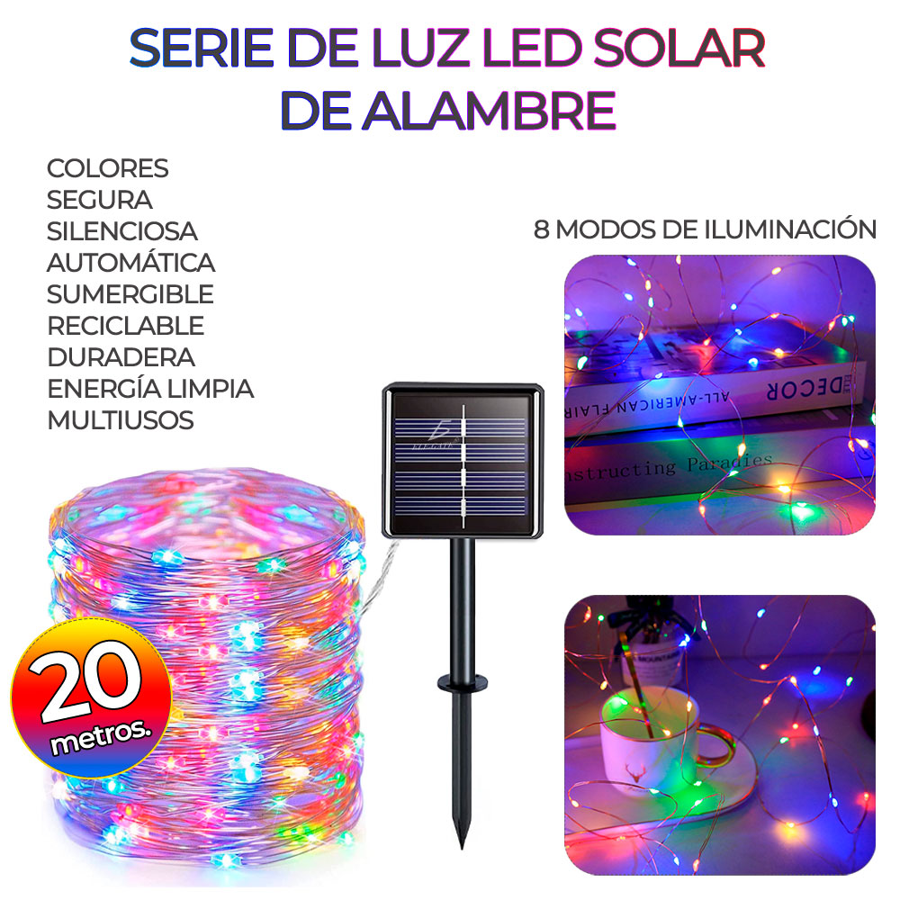 Luces Serie Solar Exterior Fiesta Navidad Tira 20 Metros