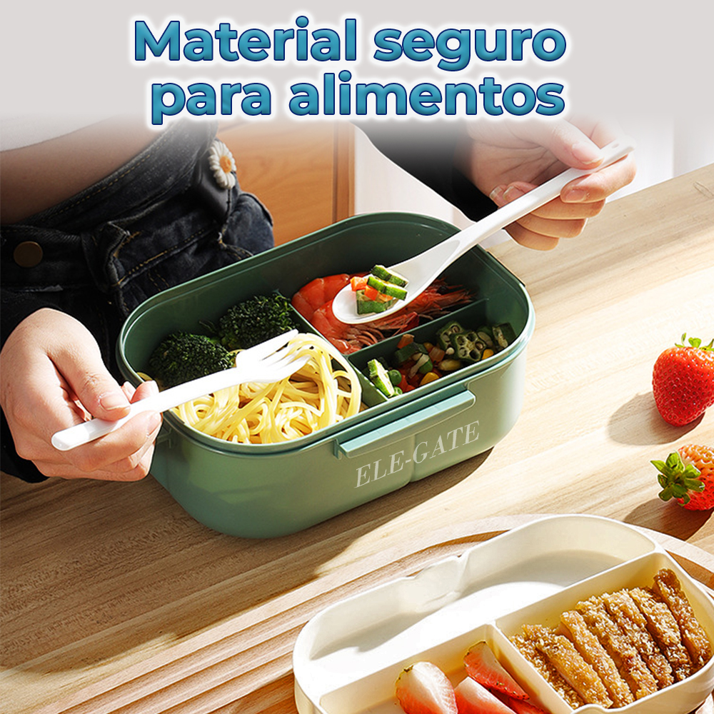 - Portátil: la fiambrera tiene una gran capacidad de 1200 ml, lo que la hace fácil de transportar y adecuada para estudiantes y trabajadores de oficina.