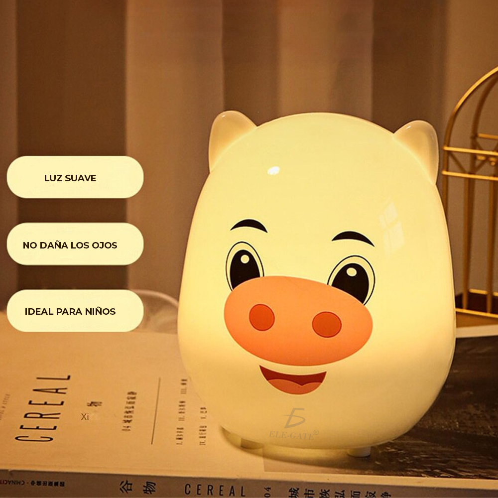 Nuestra adorable luz de noche de cerdo es ideal para iluminar cualquier espacio, desde dormitorios hasta pasillos. Con colores ajustables, esta luz suave y sin parpadeos es perfecta para crear un ambiente acogedor en tu hogar. Además, está diseñada con la seguridad de los niños en mente y es fácil de cargar con USB. Ya no tendrás que preocuparte por las noches oscuras, ¡brinda a tus pequeños una luz nocturna que los haga sentir seguros y felices mientras duermen!”